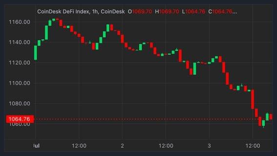 Pendle has recently lost $3 billion of its TVL with the June expiry as a result of diminishing airdrop farming hype and lower yields amid muted crypto activity. The governance token of Pendle declined 20% earlier this week amid steep roll-off in the value of assets locked on the platform. AAVE, LDO also saw more than 10% price drops as a large investor moved $10 million of tokens to Binance. Cryptocurrencies in the decentralized finance (DeFi) sector were hit harder than the broader crypto market this week, with the CoinDesk DeFi Index losing 9% from its Monday high versus the CoinDesk 20 benchmark's 5% decline during the same time. Leading the plunge was the governance token of Pendle – a DeFi protocol that offers crypto yields in the form of tradable tokens – falling more than 20% during the Tuesday and Wednesday trading sessions, with short positions piling up to bet on further declines. The protocol saw a significant, $3 billion drop in the value of assets locked on the protocol (TVL), Defillama data shows. Analysts reasoned that many users withdrew funds from the protocol instead of rolling over their positions at the end of June lock-up expiry. Pendle also benefited from the airdrop and points farming bonanza earlier this year, which ground to halt lately. "Yields aren't very good for future pools at the moment so people withdrew versus rolling [over]," Rob Hadick, general partner at venture capital firm Dragonfly said. "While there will be TVL noise in the short run due to specific points programs lapsing, we're hearing excitement around upcoming tie-ups, including the Symbiotic-Ethena-Mellow partnership, which should attract fresh inflows," Joshua Lim, co-founder of principal trader Arbelos Markets, told CoinDesk in an interview. Tokens of other major DeFi lending platforms Aave (AAVE) and liquid staking protocol Lido (LDO) were also among the biggest underperformers, falling 10%-15% during the same period. The declines happened as a large crypto investor, or "whale," transferred earlier Wednesday $6.2 million worth of LDO and $4.5 million in AAVE to crypto exchange Binance, likely to sell the tokens, one observer noted citing blockchain data on EtherScan. The DeFi sector's struggle coincided with a period of lull in the crypto market, with bitcoin (BTC) and DeFi hotbed ether (ETH) consolidating range-bound below their March peaks. ETH, the second largest crypto asset, is down about 6% from its Monday highs and has erased most of its gains since odds for regulatory approval for U.S. spot ETFs jumped overnight in late May. https://www.coindesk.com/markets/2024/07/03/defi-tokens-plunge-10-20-led-by-pendle-amid-weak-crypto-price-action-this-week/
