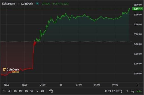 The latest price moves in crypto markets in context for May 21, 2024. Latest Prices Top Stories Bitcoin rose above $71,000 during the European morning after analysts saw the possibility of an ether ETF being approved in the U.S. improving. BTC has climbed nearly 6% in the last 24 hours, eclipsing $71,000 for the first time since early April. The CoinDesk 20 Index (CD20), which offers a broad measurement of the digital asset market, rose more than 8.5% while ETH jumped almost 20% to over $3,700. The market movements caused more than $260 million in short liquidations, the most since Feb. 28. Ether shorts lost over $115 million, followed by bitcoin shorts at just over $99 million, Coinglass data shows. ETH has been buoyed by favorable regulatory developments that seem to indicate increasing chances of spot ether ETFs being approved by the SEC after the regulator asked exchanges to update 19b-4 filings, which propose rule changes. As a result, the ether implied volatility curve, which shows market expectations of future volatility across different strike prices and expirations, flattened as 25-delta risk reversals hit year-to-date highs above 18%, and traders heavily bought $4,000 calls for 24 May and 31 May, Presto Research analysts wrote. A Polymarket contract asking if an ether ETF would be approved by May 31 jumped from 10 cents to 55 cents, representing a 55% chance that approval will take place by then. Meme coins on the Ethereum ecosystem like MOG and PEPE surged on the increasing likelihood of ether ETFs being approved. Meme tokens are often seen as a leveraged way to bet on the growth of their underlying blockchain. MOG rose nearly 50% while PEPE climbed over 20%. “Established memes are generally high beta for the native token of the chain they’re on, and Mog has established itself as a winner on Ethereum,” Viro, a Mog core team member, said in an interview over Telegram. “I think the market sees that there’s quite a lot of room to catch up to Pepe, and that’s why you see the outperformance. If you think memes are good beta; you’ll go for the higher caps like pepe or you’ll slide further down the curve for mog.” Chart of the Day The chart shows the most traded ether options on the crypto exchange Deribit in the past 24 hours. Call options at strikes well above ether's going market rate and expiring at the end of May and June have been in demand in a sign of bullish market sentiment. A call buyer is implicitly bullish on the market. Source: Velo Data - Omkar Godbole Trending Posts Ether ETF Speculation Could Weigh on SOL, Wider Altcoin Market NYAG Takes Victory Lap as Court Approves Genesis Settlement Democrat House Leadership Says Crypto Bill Vote Won't Be Whipped https://www.coindesk.com/markets/2024/05/21/first-mover-americas-bitcoin-hits-71k-as-ether-etf-hopes-build/