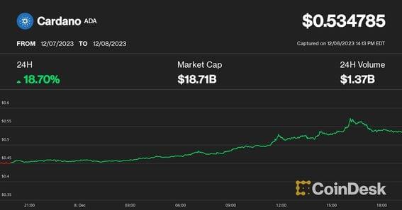 Market observers "underappreciate" future inflows from institutional investors to bitcoin, asset 21.co CEO said in a CoinDesk TV interview. Layer 1 tokens ADA, ALGO, AVAX and SOL among best performers as capital rotation from stalling BTC lifts altcoins. Bitcoin may revisit $40,000 to "fill CME price gap," crypto analyst Willy Woo speculated. Native tokens tied to layer 1 (L1) blockchains gained the most Friday, with Cardano (ADA) being the best performer, as steady bitcoin (BTC) price fueled capital rotation to altcoins. Bitcoin bounced between $43,000 and $44,000 during the day, quickly shaking off a minor dip following a stronger U.S. employment report than analysts expected that dampened interest rate cut expectations for next year. The top crypto was recently trading at around $43,800, consolidating as investors digested its swift rally to near $45,000 this week after its breakout from $38,000 a week ago. Altcoins, meanwhile, jumped across the board, resembling early November's "altcoin rotation" when slowing bitcoin momentum drove traders to realize some gains and invest in smaller, riskier cryptocurrencies. These capital rotations are typical in the crypto markets after large bitcoin run-ups, followed by a rally in bigger crypto assets then among meme coins and micro caps as traders chase tokens that haven't moved yet to profit. ADA surged 25% to 57 cents at one point during the day, its highest price since August 2022. It gave up some of the early gains later in the day, but was still up almost 20% today. Other notable top performers were native tokens of Polkadot (DOT), Algorand (ALGO), Avalanche (AVAX) and Solana (SOL), which posted 7%-11% gains. The CoinDesk Market Index (CMI), a basket of almost 200 cryptocurrencies, was up 1.5% through the day, more than BTC, underscoring altcoin outperformance. What's next for BTC As bitcoin's momentum stalled, some analysts speculated about a potential pullback to retest lower price levels. Bitcoin-focused analyst Willy Woo eyed a price level between $39,000-$41,000 based on a price gap in the Chicago Mercantile Exchange (CME) bitcoin futures market, which BTC might "fill" sometime in the future. These price gaps occur because the CME futures market, unlike native crypto exchanges like Binance or Deribit, don't trade around the clock, and there could be a difference between closing and opening prices depending on bitcoin's price action when the market is closed. Some analysts reckon that asset prices tend to revisit these levels during a correction, filling the gap. BTC rallied last weekend surpassing $40,000, when the CME futures market was closed, creating the price gap on the chart. "By my count 28 out of 30 gaps have been filled on CME daily candles (93%)," Woo posted on X, formerly Twitter. However, these gaps do not always get filled. For example, BTC hasn't revisited the CME gap at around $20,000 yet, formed in March during the weekend collapse of Silicon Valley Bank (SVB). Institutional inflows to bitcoin are "underappreciated" Despite a potential short-term pullback, bitcoin's outlook is bullish, with growing interest among institutional investors, Hany Rashwan, co-founder and CEO of digital asset management firm 21.co, said in a Friday interview with CoinDesk TV. Rashwan opined that market observers are "underappreciating" future inflows into BTC if – or once – a spot-based exchange-traded fund gets approved in the U.S, which will likely happen according to analysts. "There are a lot of prospective buyers, who for various reasons wanted to invest in crypto but has been prohibited to do so" because of regulations, he said. Rashwan noted that 75% of inflows into digital asset funds during the year happened in the past 60-90 days. "That's not normal," he said, adding that it's "a sign of change in sentiment across primarily institutional players." Rashwan prognosed all-time high prices for bitcoin, but not in the short term. "I think we will beat the bitcoin all-time highs sometime in the next 12-18 months," he said. "We are not fully out of the woods yet." https://www.coindesk.com/markets/2023/12/08/cardano-jumps-20-as-analyst-eyes-bitcoin-pullback-to-40k-to-fill-cme-gap/