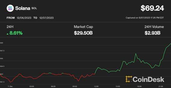 BitMex founder Arthur Hayes speculated about SOL hitting near $100 in a bullish weekend for altcoins. Ether, solana rallied to new 2023 highs as bitcoin dipped to $43,000. Bitcoin traders fear "bull trap," growing fear could propel BTC towards $50,000, Santiment said. Bitcoin's (BTC) rally halted Thursday, ceding the stage to cryptocurrency majors ether (ETH) and solana (SOL) which led the crypto rally after surging to fresh 19-month high. BTC dipped to $43,000 during the day following its breakneck climb to near $45,000 earlier this week, suggesting that traders took some profits after the largest crypto's breakout from $38,000 a week ago. Recently, bitcoin was changing hands at around $43,300, down 1.1% over the past 24 hours. ETH, meanwhile, popped 5% over the same period and hit $2,372, its highest level since May 2022. Its rally drove up the prices of other ETH-adjacent cryptocurrencies, making them the best performers of the day. Ether classic (ETC) appreciated 6%, while liquid staking protocol Lido's governance token (LDO) increased by over 11%. Native tokens of Ethereum scaling networks Optimism and Arbitrum also gained 22% and 9%, respectively, during the day. Solana (SOL) jumped over 8% to $69, the highest since May 2022, following a three-week cool-off since its mid-November local top. Arthur Hayes, crypto investor and BitMex exchange founder hinted at a $100 price target, speculating about a bullish weekend for altcoins in social media platform X (formerly Twitter) post on Tuesday. The CoinDesk Market Index (CMI), which tracks a market capitalization-weighted basket of almost 200 digital assets, was slightly up 0.6%. Traders fear bitcoin 'bull trap' Crypto analytics firm Santiment noted that BTC's flattening price coincided with traders increasingly calling for a potential "bull trap," a short-lived rally that bates investors back to the market before a major downtrend. "Traders are fearful that crypto markets may be in a bull trap at the moment," Santiment posted on X (formerly Twitter) Thursday, citing social media metrics. The growing disbelief could actually help propel BTC further toward $50,000, Santiment said, squeezing shorts who are betting on lower prices. "FUD fear, uncertainty, doubt could propel BTC to $50K if it increases," the firm added. https://www.coindesk.com/markets/2023/12/07/ether-solana-hit-19-month-highs-as-bitcoin-rally-halts-with-traders-fearing-bull-trap/