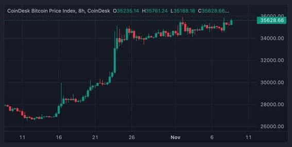 Bitwise's CIO sees future upside to bitcoin's price as the world's largest digital asset has 30% this month. The price of bitcoin (BTC) briefly touched $36,000 before settling slightly lower during the Asian trading hours on Thursday, according to CoinDesk Indices data. Bitcoin is up around 30% in the last month, and 93% over the past year. Other large-cap digital assets are also in the green, with ether (ETH) up 20% in the last month. While bitcoin’s gains this year have been impressive, and some have attributed this to the widely expected approval of a bitcoin exchange-traded fund, in a recent interview with CoinDesk, Matt Hougan, Bitwise Asset Management’s Chief Investment Officer, said that an ETF is not yet priced in. "It’s not at all priced in because the people who are going to buy this ETF are not aware that it’s coming or most likely coming; the majority of advisors who are the natural audience for this ETF don’t expect it to come until 2025 or later,” Hougan said. “If the people who are going to buy this ETF don’t think it's going to be approved in the next two months, then I don’t see how it’s priced in.” ETFs, Hougan argued, will play a significant role in opening up cryptocurrency investments to a broader range of investors, particularly financial advisors who manage a substantial portion of the U.S.' wealth. Currently, crypto has been bought by 20% of self-directed retail investors, he said, but a full 80% of the wealth in America is controlled by financial advisors and institutions, who need an ETF to access crypto. "There’s a whole entire new audience for bitcoin,” he said, comparing it to the launch of gold ETFs in the early 2000s. “The approval of a spot gold ETF in 2004 led to eight or nine consecutive years of gold price increases, the longest in its modern history since the dollar’s creation," he continued. Hougan said that BlackRock’s filing for a spot bitcoin ETF in June had a significant psychological impact on the market, effectively dispelling the lingering negative sentiment from the FTX collapse, which he refers to as the “ghosts of Sam Bankman-Fried.” “When BlackRock filed for a bitcoin ETF, and CEO Larry Fink spoke on Fox Business News about bitcoin transcending other currencies, concerns vanished,” he said. https://www.coindesk.com/markets/2023/11/09/bitcoin-tops-36k-as-etfs-not-yet-priced-in/