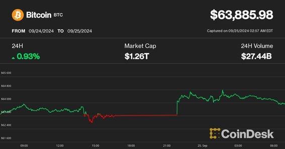 BTC broke $64,000 in late U.S. hours Tuesday as traders pushed the chances of a second consecutive 50 basis point rate Fed rate cut to 50%. PLUS: Floki fundamentals fuel a price surge. BTC is up 1% as it trades near $64K during the Asia business day. Polymarket traders are giving a 50% chance that the Fed makes another 50 bps cut. Bitcoin (BTC) showed signs of strength Wednesday as it retook the $64,000 level in early Asian hours, but later retreated, to reverse drawdowns from a day before, with alternative token Sui (SUI) leading gains in the broader market. BTC added 1% in the past 24 hours, data from CoinDesk Indices shows, while Solana’s (SOL) jumped 3% to lead gains among major tokens. Ether (ETH) was flat on the day amid signs of a fallout with institutional investors, while BNB Chain’s (BNB) showed signs of reversals after a 10% rally in the past seven days. The broad-based CoinDesk 20 (CD20) index, a measure of the price performance of the largest tokens by market capitalization, was up 2.4%. Outside of majors, memecoins and layer-1 token bets have led gains in the crypto market on continual demand and positive sentiment among traders. Sui Network’s (SUI) jumped 16% in the past 24 hours to extend weekly gains to nearly 50%, while dog-themed memecoins jumped over 5% on average. Floki’s FLOKI tokens zoomed 16% over the past week as its speedy and cheap trading bot crossed $75 million in volumes and crossed $1 million in net fees - with part of that amount now put aside to buy and burn FLOKI from the open market. Developers also said late Tuesday that Floki’s metaverse game Valhalla had signed a multi-year partnership with esports organization Alliance to boost users and visibility ahead of its release in November. Looking Ahead Bitcoin traders have received a boost in the past week as countries from the U.S. to China are easing monetary policy to combat a slowdown in thier economies - setting the bedrock for what can be a rush to riskier bets in the coming months. Expectations that the U.S. Federal Reserve will cut its benchmark interest rate by another 50 basis points at its November meeting is currently at 50% on Polymarket, while the possibility of a 25 bps cut is at 44%. Some traders say the Fed’s move ultimately influences other authorities to take similar steps, leading to a snowball effect. “The timing of the announcement suggests that the Fed’s policy played a key role in the PBoC’s decision,” Presto Research analysts said in a Wednesday note shared with CoinDesk. “There’s been chatter that what’s holding the PBoC back from being more aggressive in providing monetary stimulus is the risk of it losing efficacy due to capital flight, as CNY’s short-term rate has been below that of the USD since mid-2022.” “It’s becoming clear that the Fed has finally started its rate cut cycle, removing such concerns. This implies that we may see more from the PBoC as the Fed continues to cut rates and the negative rate differential narrows,” they added. https://www.coindesk.com/markets/2024/09/25/bitcoin-strength-continues-on-us-china-easing-floki-bot-crosses-trading-milestone/