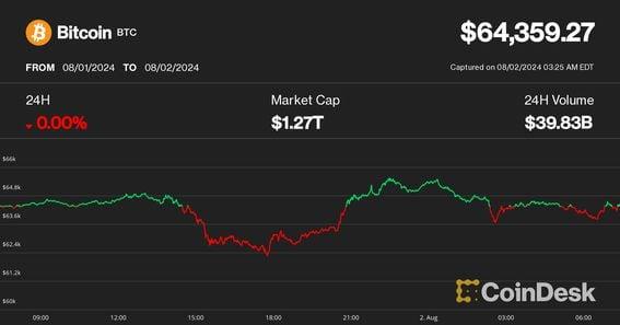 Traditional markets from the U.S. to Japan saw declines across major indexes and stocks, with the tremors seeping into the cryptocurrency market. Bitcoin rebounded from lows near $62,500 in Asian morning hours on Friday, amidst a global asset sell-off entering its third day. Despite the rebound, BTC remained under pressure, trading near its 50-day moving average, which is a key technical support level for traders. Bitcoin (BTC) reversed losses in Asian morning hours Friday as a general sell-off across global assets continued into its third day this week, exacerbated by Middle East geopolitical tensions. BTC slumped to as low as $62,500 in late U.S. trading hours on Thursday, reversing losses and trading just under $64,000 at 6:30 UTC to trade near its 50-day moving average, which remains a tactical support line for some traders. “If the decline develops, dynamics around the $63K and $61K levels, near where the 50 and 200-day moving averages are, will be important,” Alex Kuptsikevich, FxPro senior market analyst, told CoinDesk in an email. “A failure of this support will open the way to $55K, which is quite frightening.” “August is considered one of the two worst months for BTC. Over the past 13 years, bitcoin has ended the month up only five times and down eight times. The average decline was 15.4% and the average rise was 26%,” he added. Crypto majors fell in the past 24 hours amid weakness in global equities. Ether (ETH) lost 1.6% in the past 24 hours, while major tokens XRP and Solana’s SOL dropped as much as 8%. The broad-based CoinDesk 20 (CD20), a liquid index tracking the largest tokens by market capitalization, minus stablecoins, was down 2.44%. This broad sell-off in BTC was felt in some of the bitcoin exchange-traded funds, according to market data. While the U.S.-listed BTC ETFs had a total daily net inflow of $50.6 million, GBTC, FBTC, ARKB, BITB and HODL posted outflows. Meanwhile, Ether ETF's collectively posted net inflow of $26.75 million although many registered zero flow. The technology-heavy Nasdaq 100 ended Thursday with a 2.6% loss, and the S&P 500 Index sank 1.4%, losing nearly all of Wednesday’s 1.6% gains on concerns around the U.S. economy and future earnings of technology firms. Elsewhere, Japan’s Topix index dropped 6% on Friday to mark its biggest fall since 2016. In a note shared with CoinDesk, Presto Research highlighted Microstrategy's (MSTR) standout performance in 2Q24 due to its 3.7% BTC per share increase via "intelligent leverage," a planned $2 billion equity offering for BTC purchases, and the adoption of fair-value accounting for BTC by 1Q25, which will benefit the broader BTC market. Year-to-date, MSTR is up 118%, while BTC is up 45%, according to CoinDesk Indices data. https://www.coindesk.com/markets/2024/08/02/bitcoin-traders-eye-55k-amid-us-stocks-sell-off-xrp-leads-losses-in-major-cryptos/