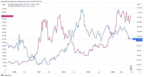 A less-widely followed report from the Chicago Fed indicated the easiest conditions since November 2021. The Chicago Fed's NFCI fell to -0.56, the loosest financial conditions since bitcoin's 2021 cycle high. Financial conditions and bitcoin show a negative correlation suggesting the crypto thrives in risk-on environments. Bitcoin has more than doubled in the last 12 months as financial conditions ease, signaling potential for further gains. The Chicago Fed’s National Financial Conditions Index (NFCI) offers a weekly update on U.S. financial conditions across money markets, debt and equity markets, and the traditional and shadow banking systems. The NFCI is a valuable tool for assessing the health of financial markets, providing insights into liquidity, credit availability, and market risk. The index is structured so that a negative NFCI value indicates looser-than-average financial conditions, suggesting an environment where liquidity is more readily available. Conversely, a positive value indicates tighter-than-average conditions, where access to capital becomes more restrictive. For the week ending Sept. 13, the NFCI registered at -0.56, indicating that financial conditions eased even further from the already looser than average level of the previous week. This level of financial ease hasn't been seen since November 2021, a period during which bitcoin (BTC) reached its 2021 cycle high of $69,000. A noteworthy analysis on the relationship between the NFCI and bitcoin was recently shared by Fejau, host of the Forward Guidance Podcast. In an X thread, Fejau pointed out the negative correlation between the NFCI and bitcoin, arguing that looser financial conditions often act as a tailwind for risky assets. According to Fejau, when financial conditions loosen, easing increases, leading to a risk-on environment where speculative assets, including bitcoin, tend to rally. Fejau’s analysis traces this negative correlation across several market cycles. In 2013, as financial conditions eased, bitcoin surged from around $100 in July to over $1,000 by November. This coincided with the NFCI index registering a low of around -0.80, indicating significantly looser than average financial conditions. Similarly, in 2017-2018, the loosening of financial conditions coincided with bitcoin's dramatic rise from $2,000 to $20,000 in just six months at the end of 2017. However, during the COVID-19 pandemic, financial conditions tightened significantly—the most restrictive since 2009—leading to a crash in both traditional risk assets and bitcoin. Most recently, Fejau notes that as financial conditions have loosened over the past twelve months, bitcoin has once again surged, climbing from $25,000 to over $73,000 in March 2024 even before global central banks started to cut interest rates. Which shows financial conditions have been loose for the past twelve months. This relationship is not entirely straightforward, with other factors like the DXY index (a measure of the U.S. dollar's strength) also influencing bitcoin's trajectory. A rising DXY tends to have negative implications for bitcoin, as a stronger dollar makes speculative assets less attractive. As financial conditions continue to ease, the outlook for bitcoin and other speculative investments could remain positive, provided other economic factors remain supportive. https://www.coindesk.com/markets/2024/09/23/bitcoin-could-surge-thanks-to-looser-financial-conditions/