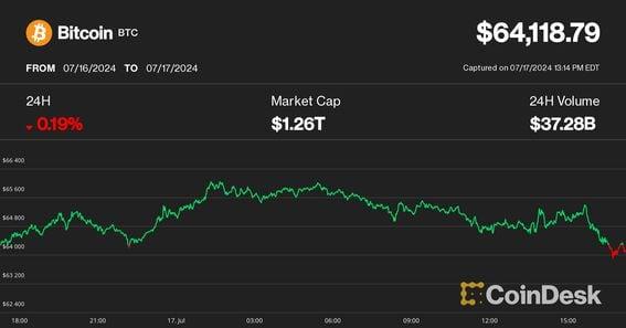 A stock market correction is the biggest risk for the crypto market, but a renewed downturn would be a buying opportunity, an LMAX Group strategist said. Cryptocurrencies sharply reversed early gains during the U.S. trading session on Wednesday with bitcoin (BTC) dipping below $64,000 as a broad-market equity sell-off weighed on the digital asset market. The leading cryptocurrency by market cap sold off 2% within an hour, dropping to as low as $63,890 after trading above $66,000 earlier in the session. At publishing time, BTC was trading at $64,000, down 0.5% over the past 24 hours. Altcoin majors such as solana (SOL), cardano (ADA) and Chainlink's token (LINK) sold off 2%-4% over the same time frame. The broad-market crypto benchmark CoinDesk 20 Index (CD20) was down 1.2% over the past 24 hours, with most constituents in the red. The action happened while key U.S. equity indexes also sold off, with tech-heavy Nasdaq plunging 2.7% and the S&P 500 falling 1.3%. Tech megacap stocks such as chipmaker Nvidia (NVDA), which were the biggest contributors of the two benchmarks march to new all-time highs, have been struggling in the past few days as investors rotated capital to smaller cap stocks in anticipation of more accommodating interest rates later this year. Nvidia was lower by 6.5% on Wednesday, though still higher by 145% year-to-date. Joel Kruger, market strategist at LMAX Group, said that the crypto rally might stall if the stock market selloff turns into a deeper correction, but over a longer time frame may provide a haven for investors fleeing stocks. "The one concern we’ve been flagging in recent sessions is our concern about the state of the U.S. equities market and the possibility we could soon see a major bearish reversal to allow for a healthy correction," Kruger said in a Wednesday note. "But even in such a case, there will be plenty of reason to be wanting to buy bitcoin as a flight to safety asset, and plenty of reason to be wanting to pick up other crypto assets into dips on their potential for massive innovation," he added. https://www.coindesk.com/markets/2024/07/17/bitcoin-dips-below-64k-as-us-equity-selloff-stalls-crypto-rebound/