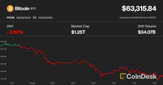 Despite October being a historically strong month for crypto assets, options traders expect further downside over the next few weeks, with a rally coming post-election, Wintermute said. Bitcoin dipped 3.7% over the past 24 hours while XRP, ADA, DOT and LINK plunged over 5%. SOL, ETH outperformed. Even with the decline, BTC is on track to finish September with a nearly 7% return, its best performance since 2013. ByteTree's Charlie Morris contemplated whether the expectation for a strong October is so widespread that it may upend the trend. Cryptocurrencies fell sharply on Monday with bitcoin (BTC) nearing the $63,000 level during the U.S. session, finishing on a sour note of what otherwise was a surprisingly stellar September for digital assets. BTC dipped 3.7% over the past 24 hours, while ether (ETH) and solana (SOL) held up relatively well with 2.8% and 1.9% declines, respectively. Several altcoin majors in the broad-market CoinDesk 20 index tumbled more than 5% during the same period, including Ripple (XRP), Cardano (ADA), Polkadot (DOT) and Chainlink (LINK). Crypto-related stocks also got slammed lower, with multiple bitcoin miners including Marathon Digital (MARA), Bitdeer (BTDR), Hut 8 (HUT) and CleanSpark (CLSK) plunging 5%-10%. Crypto exchange Coinbase (COIN) fell over 6%, while MicroStrategy (MSTR) was more than 3% lower shortly before the close of trade. A look at traditional markets show U.S. equity indexes flatlined for most of the day before heading lower towards the later hours of the session, while key European markets sold off 1%-2%. Japan's incoming prime minister Shigeru Ishiba said that "monetary policy must remain accommodative as a trend," according to a Reuters report. His comments came after his surprise weekend elevation to the PM role set off a 5% plunge in the Nikkei on Monday. In the U.S., Federal Reserve Chair Jerome Powell tempered expectations on Monday that future rate cuts will be as aggressive as September's 50 basis point cut. “Looking forward, if the economy evolves broadly as expected, policy will move over time toward a more neutral stance. But we are not on any preset course,” Powell said. “The risks are two-sided, and we will continue to make our decisions meeting by meeting.” “Overall, the economy is in solid shape," he added. "We intend to use our tools to keep it there." When might bitcoin truly break out? Even with today's dip in crypto prices, bitcoin is on track to finish with a solid positive return in September despite its reputation for being an adverse month. BTC was up just shy of 7% through the month at prices a few hours before UTC midnight, booking its best September performance since 2013, per CoinGlass data. September's positive return could bode well for October, with every previous green September having been followed by more gains the next month. October is also historically one of the strongest months for bitcoin, earning its nickname "Uptober," by recording positive monthly returns 9 times out of 11 since 2013. However, Charlie Morris, founder of investment manager ByteTree, contemplated whether the expectation of a strong October is so widespread that it may throw a curveball to investors. "The contrarian will always be cautious of an idea that has become too popular because popularity means the money is already invested ahead of the event," Morris wrote in a Monday report. His report further noted that BTC's price historically consolidated for roughly six months after halvings before making new highs, and the current price action is in line with that pattern. Given that this year's event happened on April 19, a breakout to new highs may happen towards the end of October if the pattern holds up. Options traders, however, expect that a bigger rally will only come after the U.S. elections in November, and are thus positioning for further weakness in the coming weeks, according to Jake Ostrovskis, OTC trader at crypto market maker Wintermute. "With spot trading dipping below $65,000, the volatility surface indicates a bias toward the downside until late October and November, when the market begins to favor calls over put protection," Ostrovskis said. "Current positioning suggests support for a post-election rally." https://www.coindesk.com/markets/2024/09/30/bitcoin-ends-historic-september-with-a-dip-but-breakout-may-not-come-before-us-election/