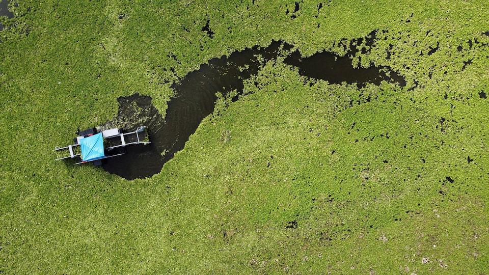 SUCHITOTO, El Salvador, Aug 12 (Reuters) - The proliferation of water lettuce on El Salvador's largest wetland reservoir, known as Lake Suchitlan, is jeopardizing a key source of the country's hydropower generation as well as local species and communities, authorities said on Tuesday. Residents armed with excavators and dump trucks among other tools venture out to the reservoir on a daily basis to remove swathes of the bright green aquatic plants, which are growing rapidly due to flows of nutrients, debris and pollution, exacerbated by seasonal downpours. Sign up here. The free-floating invasive weed, which is not generally considered edible for humans, can smother native plants and choke waterways. The reservoir is El Salvador's largest freshwater body and plays a key role in the country's hydropower operations. It is also a specially designated wetland site, home a rich variety of migratory birds, aquatic species and native plants. Since late July, workers have cleared the equivalent of nine soccer fields of vegetation from the water's surface, weighing around 1,270 metric tons, according to CEL, the government's local hydroelectric commission. https://www.reuters.com/sustainability/climate-energy/pollution-fed-aquatic-weed-overruns-el-salvadors-largest-reservoir-2025-08-13/