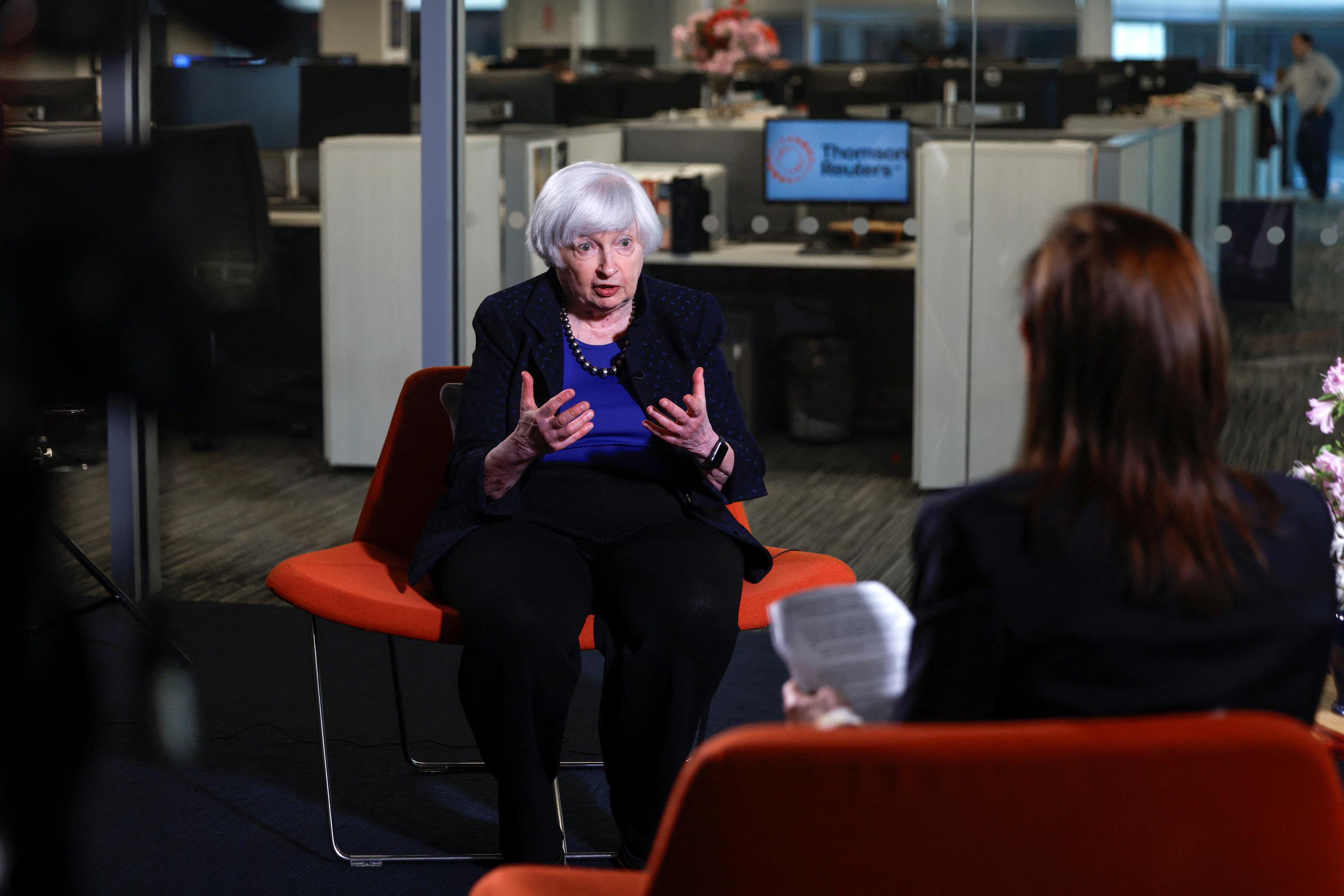 Yellen: Q1 GDP data may be revised up; spending, investment strong Inflation to continue to ebb despite Q1 flare-up, Yellen says Yellen: tapping interest on Russian assets can win G7 support Yellen: currency market inverventions should be 'very rare' WASHINGTON, April 25 (Reuters) - U.S. Treasury Secretary Janet Yellen told Reuters on Thursday that U.S. economic growth was likely stronger than suggested by weaker-than-expected data on first-quarter output and said the Biden administration was keeping all options open to respond to threats from China's excess industrial capacity. In a wide-ranging Reuters Next interview, Yellen also said that a U.S. proposal for using the interest earnings from $300 billion in frozen Russian assets to aid Ukraine could win broad support from G7 allies. Yellen said U.S. GDP growth for the first quarter could be revised higher after more data is in hand and inflation will ease to more normal levels after a clutch of "peculiar" factors held the economy to its weakest showing in nearly two years. "The U.S. economy continues to perform very, very well," Yellen said in an interview with Reuters, responding to the Commerce Department's report showing that U.S. gross domestic product grew at a 1.6% annualized rate last quarter. That was below the 2.4% estimated by economists and less than half the pace in the fourth quarter of 2023 - thanks to substantial drags from trade and private inventories. The report also showed a worrisome surge in inflation, with the personal consumption expenditures (PCE) price index excluding food and energy rising at a 3.7% annual rate after a 2.0% pace in the fourth quarter of 2023. Yellen downplayed the inflation jump and said she did not see that as indicating that unemployment needed to increase or other areas of the economy needed to cool to return inflation to the Fed's 2% target. "The fundamentals here are in line with inflation continuing back down to normal levels," Yellen said. Fighting inflation remained President Joe Biden's top priority, Yellen said, highlighting his administration's efforts to reduce healthcare, energy and housing costs. But Biden, a Democrat, has struggled to translate U.S. economic strength into voter support ahead of the November presidential election. Republican challenger Donald Trump led Biden by seven percentage points in a recent Reuters/Ipsos poll when voters were asked which candidate would be better for the economy. "What I focus on most is the strength of consumer spending and investment spending," Yellen said. "Those two elements of final demand came in in line with last year's growth rate ... so this is the underlying strength of the U.S. economy that showed continuing robust strength." "The headline figure was off a little bit but for reasons that are peculiar and not really indicative of underlying strength," she added. Indeed, a number of private economists said the GDP data likely overstated any weakness in an economy that had grown at above the rate most see as its potential for nearly two years, despite aggressive interest rate hikes over that span by the U.S. Federal Reserve aimed at quashing inflation. Yellen said dollar strength has been another byproduct of U.S. growth and tight monetary policy. She acknowledged that this has put some pressure on other countries, but said currency interventions should occur only in "very rare and exceptional circumstances," when markets are disorderly with excessive volatility. She declined to comment on the Japanese yen's value when asked whether it was out of line with fundamentals. Last week, the U.S., Japan and South Korea agreed to consult closely on currencies, acknowledging concerns from Tokyo and Seoul over their currencies recent sharp declines against the dollar. CHINA OVERCAPACITY Yellen told Reuters no option was "off the table" for dealing with one threat to the U.S. economy - overproduction in China, which was hurting manufacturers in numerous countries. She said that while Chinese policymakers have acknowledged they have a problem with excess industrial capacity for electric vehicles, solar panels and other clean energy goods, they need to address it. The issue was "discussed intensively" last week at a U.S.-China meeting on the sidelines of the International Monetary Fund and World Bank spring meetings in Washington, she said. Asked about potential for new tariffs or other actions to protect U.S. producers from an expected flood of Chinese exports, Yellen said she would not eliminate any options as a possible response. She said Chinese overproduction threatens the viability of manufacturers in the U.S., Europe, Japan, Mexico and India but the problem won't be resolved "in a day or a week." "So it's important that China recognize the concern and begin to act to address it," Yellen said. "But we don't want our industry wiped out in the meantime, so I wouldn't want to take anything off the table." The Biden administration is completing a review of the "Section 301" unfair trade tariffs on Chinese imports imposed by former President Donald Trump in 2018, which U.S. officials have said could lead to higher tariffs on some products. Biden last week called for the review to triple the Section 301 duties on Chinese steel to 25%. U.S. Trade Representative Katherine Tai also told senators that the U.S. needed to take "early action, decisive action" to protect the fledgling American EV sector from Chinese imports. U.S. tariffs on Chinese vehicle imports are now about 27.5%, and few Chinese EVs are sold in the U.S. at the moment. RUSSIAN ASSET PLANS Yellen said that a proposal under discussion by finance ministers from the Group of Seven (G7) industrial democracies to harness earnings from frozen Russian central bank assets to aid Ukraine can be achieved without an outright confiscation of those assets, allaying the concerns of some countries. Yellen welcomed what she called a "very constructive step" taken by the European Union to segregate t