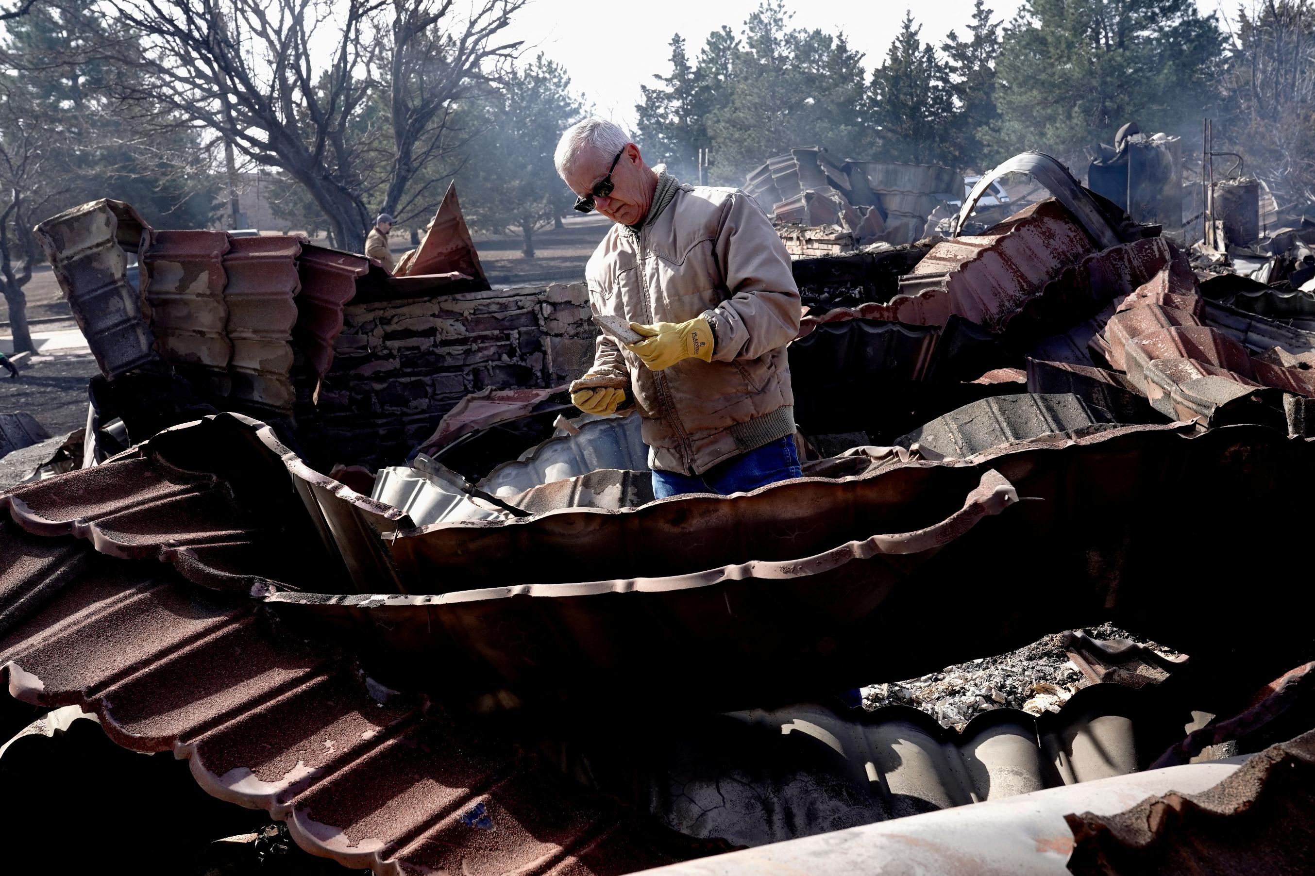 CANADIAN, Texas, Feb 28 (Reuters) - Richard Murray choked back tears on Wednesday as he surveyed the charred remains of his mechanic's workshop and home of 50 years in the small Texas Panhandle town of Canadian. The previous night a sheriff's deputy had pounded on the door and ordered Murray and his wife Gilissa to evacuate as the state's second-largest wildfire on record approached their home. "The house is gone and all the cars are melted," said Murray, 72, shortly after he returned home Wednesday morning. "There's nothing left." The wildfire, raging northeast of Amarillo since Monday, has blackened 850,000 acres (344,000 hectares) of grasslands and timber since Monday and spread eastward across the border of Oklahoma, the Texas A&M Forest Service reported. At least one person, an 83-year-old woman in Hutchinson County, was reported by local media to have died in the blaze, dubbed the Smokehouse Creek fire. Firefighters had managed to carve containment lines around just 3% of the blaze as of Wednesday night, officials said. Several smaller wildfires were burning other parts of the state's northern Panhandle, stoked by fierce winds and hot, dry conditions. The area scorched by the Smokehouse Creek Fire exceeded the land mass of the state of Rhode Island, making it nearly as immense as the largest wildfire on record in Texas, the East Amarillo Complex Fire that burned 907,000 acres in 2006. The Forest Service said an as-yet unknown number of structures were damaged and destroyed. Terrill Bartlett, Canadian's mayor, said the town was "blessed" that there had been no reports of serious injuries or fatalities, but it was devastating for residents who had lost homes. "We're the kind of community that pulls together and supports one another," he said on Wednesday. Murray said he and his wife will stay with friends for now and have already received dozens of calls from people offering help. On Wednesday morning, they were searching for their dogs and two cats. "That's the hardest thing, not knowing what happened to them," he said. The next-largest of the Texas conflagrations was the Windy Deuce Fire, which as of Wednesday night had charred 142,000 acres and was 30% contained. On Tuesday, the Windy Deuce had crept to within a few miles of the U.S. Energy Department's Pantex plant, the nation's primary nuclear weapons assembly facility, located near Amarillo, prompting officials to evacuate non-essential personnel and suspend operations. But the leading edge of that blaze shifted to the north and west, away from Pantex, on Wednesday, allowing routine activities at the plant to resume. "Operations at the Pantex Plant returned to normal Wednesday," the facility said in an online notice. "There is no imminent wildfire threat to the plant at this time." On Tuesday, Texas Governor Greg Abbott issued a disaster declaration for 60 counties and directed the Texas Division of Emergency Management to activate more than 95 firefighters as well as personnel to close roads, control traffic, offer medical aid, and provide livestock support. The Federal Emergency Management Agency (FEMA) and U.S. Forest Service are helping Texas, and federal authorities are in close touch with officials "on the front lines of these fires," said White House press secretary Karine Jean-Pierre at a news briefing on Wednesday. More than 13,000 Texas homes and businesses were without power as of Wednesday morning, with more than 4,000 of those in the Panhandle region alone, according to data from PowerOutage.us. Another resident of Canadian, Julene Castillo, tried to flee on Tuesday evening but was forced back when the smoke became too thick to drive through. "The fire was burning all around us, we couldn't get out," said Castillo, 51, in an interview on Wednesday. "Even with the windows rolled up, your eyes and throat burned." Castillo, who works as a secretary for Canadian Methodist Church, drove to the town's high school where she and about 100 other families "sat and prayed and cried and tried to comfort each other" in the parking lot. A volunteer firefighter said about 50 homes had burned to the ground in Canadian alone, according to Castillo. "We didn't know what else would happen. We could see the fire's glow as the sun went down," Castillo said. Castillo returned home later Tuesday night and discovered her home had survived. She sheltered in place and opened her church on Wednesday for anyone needing a place to stay or pray. https://www.reuters.com/world/us/second-largest-wildfire-texas-history-rages-across-panhandle-2024-02-28/