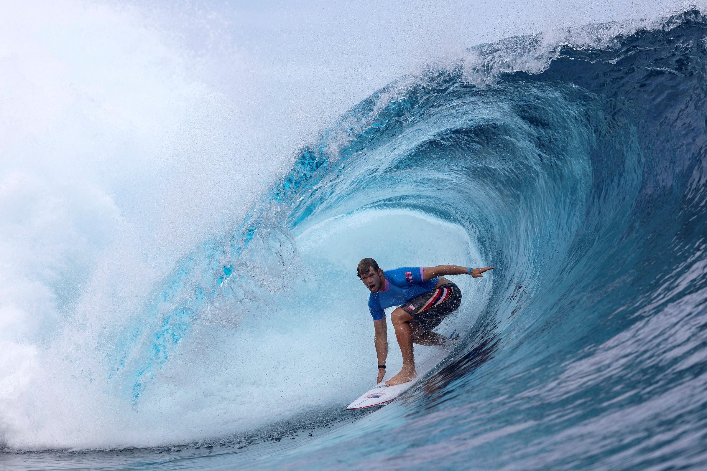 TEAHUPO'O, Tahiti, July 29 (Reuters) - Brazil's Gabriel Medina powered through a giant blue barrel for the highest score of the Olympic surfing competition so far, but Tahiti's Teahupo'o stole the show on Monday with some of the most incredible waves ever seen in competition. The decision to hold the surfing event at the perfect reef pass of Teahupo'o proved inspired as a solid southwest swell rose and a forecasted storm held off just long enough to complete the men's third round. Teahupo'o, which loosely translates as "Wall of Skulls" after a gruesome local legend, really bared its teeth after two days of more user-friendly conditions. Time after time, surfers paddled hard and threw themselves into the waves, which sucked below sea-level as they hit the reef. Those that got it right were spat out of the fearsome tubes, shrouded in firehose blasts of spray. Horrendous wipeouts, broken boards and jetski rescues followed for those that got it wrong. Brazil's Gabriel Medina got the wave of the event so far in his round five heat against Japan's Tokyo Olympic silver medallist Kanoa Igarashi, a 9.90 out of 10 that was if anything, underscored. Taking off deep, Medina pumped through an enormous tube and signalled to the judges that he thought it was worth a 10 before flying into the channel. Most of those on the flotilla of boats and jetskis watching metres away screamed in agreement. Medina backed it up with a 7.5 for a 17.4 points total to cement him as a favourite to win gold. "I never imagined we could get waves like this in the Olympics," said Medina. "I'm comfortable when the waves are good and as long as it's like this, it's good for everyone ... Today was a good day for sure." FLORENCE OUT One heavyweight clash, John John Florence of the United States taking on Australia's Jack Robinson, was brutal and tense rather than spectacular as both tube-riding maestros struggled to get the right waves. "We didn't get it easy. At the start of the heat, I got dragged over the bottom and then almost had a two-wave hold down," said Robinson, who had been able to snatch a quick breath just before the next wave smashed him. Robinson agreed surfing might be the most dangerous sport in the Olympics in conditions like these. "Every other sport is in a court or a stadium, and we're in the ocean, which is the biggest, most powerful source of life that we have on this planet," he said. "The wave is just so powerful. It doesn't relate to any other sport, you know what I mean? Maybe an avalanche or something coming down on your head on a mountain. That's similar ... It's so dangerous." 'JUST INSANE' Earlier, Tahiti's Kauli Vaast, surfing for host nation France, eliminated American Griffin Colapinto. "It was just perfect," said Vaast, who has had more than his share of jaw-dropping waves at "The End of the Road" as Teahupo'o is also known. "There are some 10-foot, perfect 10-foot (waves) coming up, offshore wind, two guys out, beautiful sunny days - just insane." Countryman Joan Duru, a veteran known for charging heavy waves, scored two 9-point rides to notch up the highest heat score of the competition so far, 18.13 out of 20. Japan's Reo Inaba knocked out Brazil's two-time world champion Filipe Toledo, whose countryman Joao Chianca triumphed over Morocco's Ramzi Boukhiam in the round's highest combined scoring heat - 18.10 to 17.80. "I'm really upset because I know that I could have brought gold for Morocco in these types of waves," Boukhiam said. "It was possible, because I love this shit, man." Chianca almost died after a brutal beat-down in Hawaii last December, dragged unconscious from the water and missing this year's professional tour. "Joao is one of my really good friends and I'm really happy he's alive and that we're doing this," Boukhiam said. "And now look at us, fighting for a spot in the quarters, but in pumping waves, who would have thought? So that was really emotional. And I'm happy for the kid, you know, I'm happy for him." The women's round three was scheduled to follow the men's, but conditions quickly turned with howling winds and pouring rains lashing the lineup, forcing the competition on hold, probably for a couple of days. Sign up here. https://www.reuters.com/sports/olympics/surfing-florence-robinson-meet-heavyweight-round-three-clash-2024-07-29/