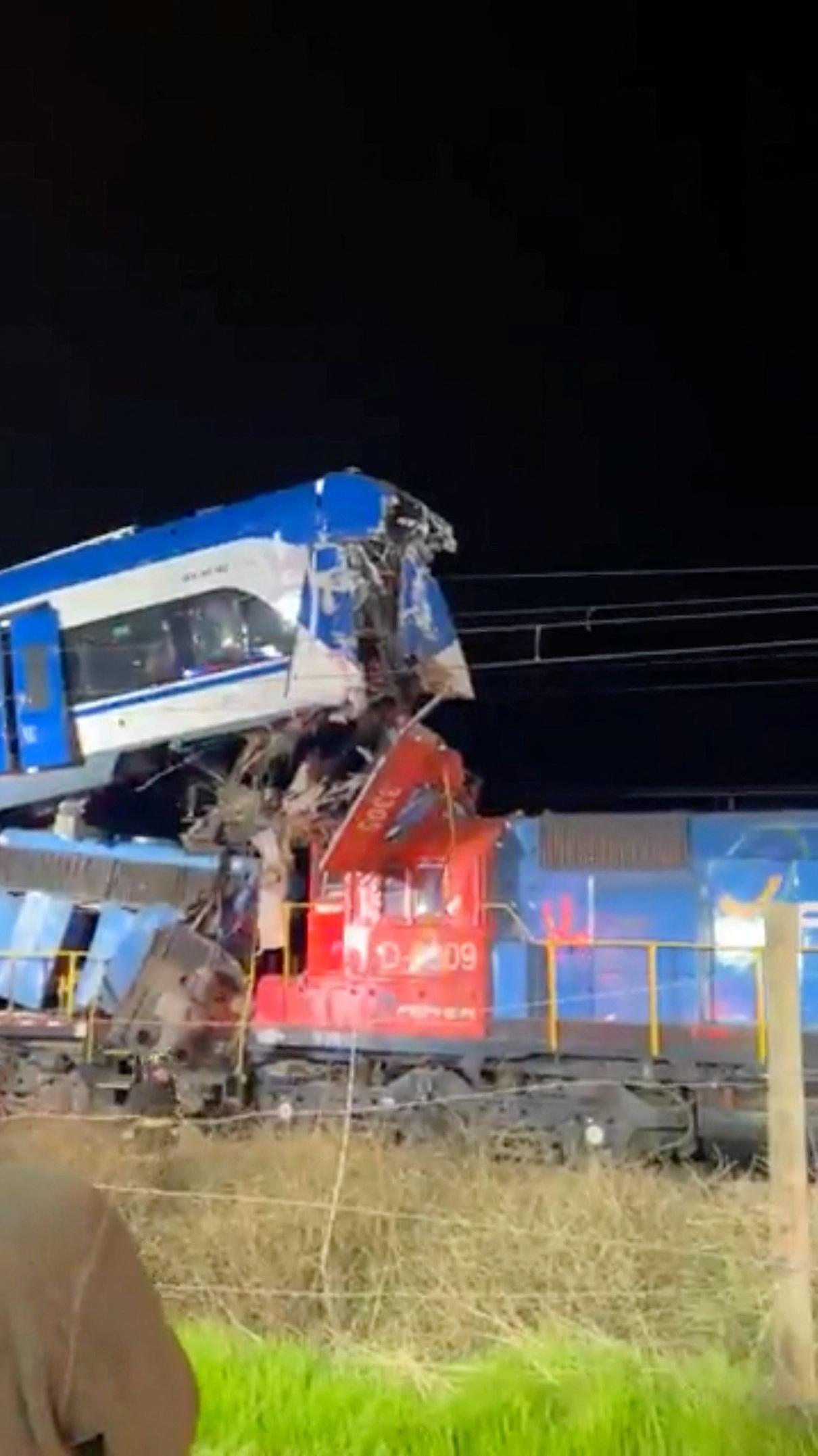 SANTIAGO, June 20 (Reuters) - Two people were killed and nine injured on Thursday when a passenger train in a test run by Chile's state railway company (EFE) collided with a cargo train operated by private rail firm Fepasa, EFE said. In the San Bernardo area on the outskirts of the capital shortly after midnight, the EFE train collided with the northbound Fepasa train carrying about 1,346 metric tons of copper. The injured, including four Chinese nationals, were part of the test train crew and were receiving medical treatment. Local prosecutor Pedro Aravena told local media the injured were in serious but not life-threatening condition. The two people killed were operators of the Fepasa cargo train, EFE said in a statement. The local prosecutor's office detained two EFE officials as part of a probe into the accident. Initial findings indicated that the passenger train was conducting speed maneuvers when it collided with the Fepasa train, Aravena said at a news conference. The train undergoing the test run was not informed of another cargo train approaching from the south, he noted. The EFE passenger train's black box has not been retrieved, the Transport Ministry told Reuters, adding its GPS system was operational at the time of the accident. Fepasa's General Manager David Fernandez told local media that despite the accident, train travel remains statistically safe. "When there is a train accident it is very shocking as you can see. But the rail system clearly still offers much more security than highways," he said. Sign up here. https://www.reuters.com/world/americas/two-killed-chilean-train-test-run-collides-with-cargo-train-2024-06-20/