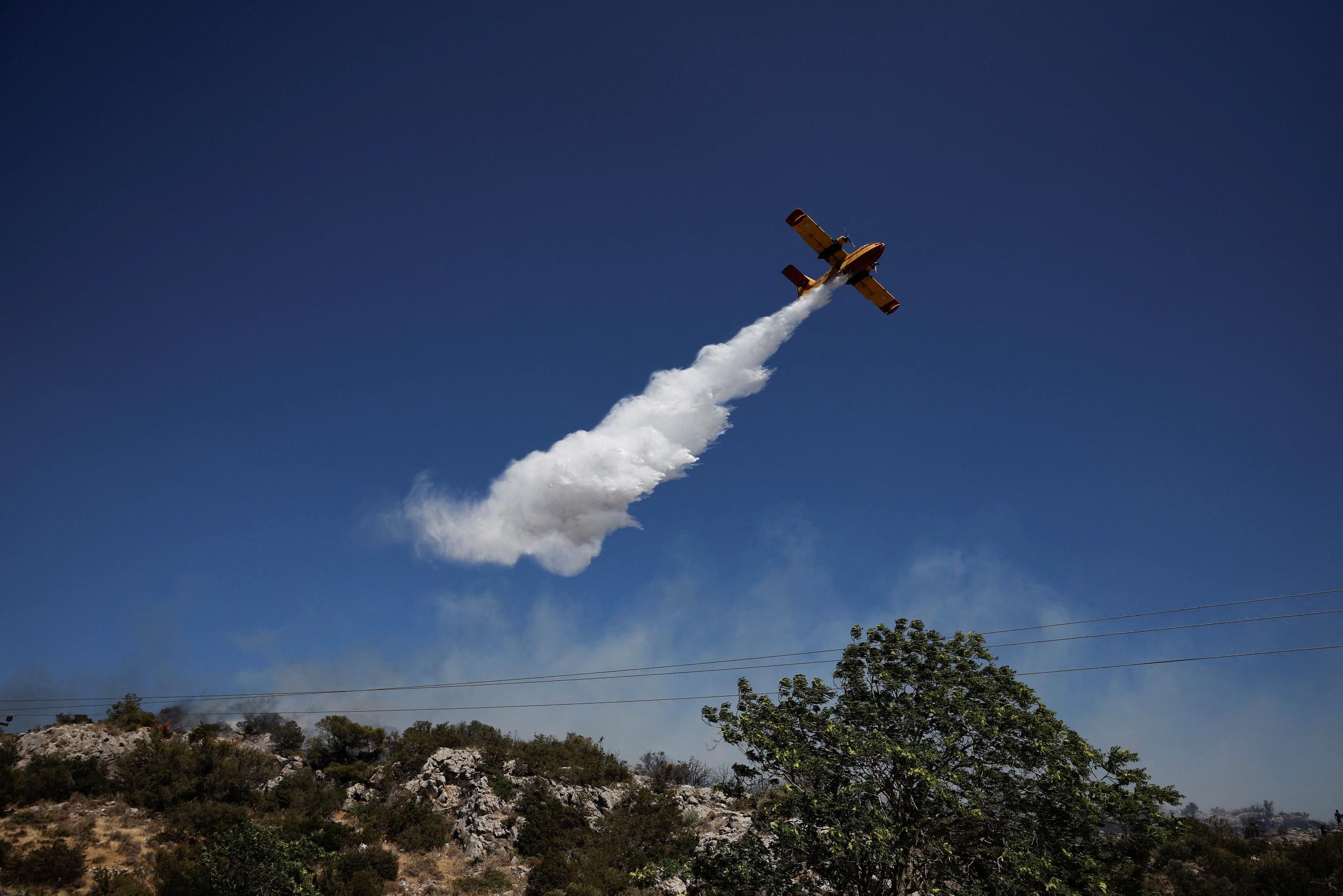 ATHENS, June 19 (Reuters) - Greek firefighters appeared close to containing a wildfire near Athens on Wednesday that forced dozens to flee their homes, and authorities now believe the fire was the result of arson as well as hot, dry conditions. Traffic was suspended along a main highway connecting Koropi to Athens' southern suburbs, about 30 km (19 miles) south of Athens. There were no reports of deaths or injuries. A fire service official said the intensity of the blaze had eased but it was not out, noting that high winds carry sparks that can quickly open new fronts. Civil protection minister Vassilis Kikilias said officials have verified indications that the fire near Athens was the result of arson as well as extreme weather conditions. He said there is a video and photos of the suspected arsonist and authorities will publish them. In Koropi, a storage facility and at least one home were burned, and flames crept into a boat dry dock and across fields of dry grass and olive trees. Authorities evacuated two nearby villages. "I saw a lot of smoke behind our building, it was very close to us. It went around the hill and passed in front of us," local resident Anastasia Papadopoulou told Reuters. Volunteer and professional firefighters dragged hoses over blackened fields in 35 degree Celsius (95 degrees Fahrenheit) heat. Much of the area has had no rain for weeks, leaving large areas bone dry. Six firefighting planes, 16 helicopters, dozens of fire engines and more than 150 firefighters were dispatched to the scene, the fire service said. Several hundred firefighters were deployed to battle more than 60 forest fires across the country, with 16 fires still active, including a big one in Peloponnese. High winds and hot temperatures will extend the risk into Thursday. "Since noon we had a new fire breaking out almost every 10 minutes," Kikilias said. After forest fires last year forced 19,000 people to flee the island of Rhodes and killed 20 in the northern mainland, Greece has scaled up its preparations this year by hiring more staff and increasing training. Wildfires are common in the Mediterranean nation, but they have become more devastating as summers have become hotter and drier, which scientists relate to climate change. Sign up here. https://www.reuters.com/world/europe/wildfire-rages-outside-athens-fanned-by-strong-winds-2024-06-19/