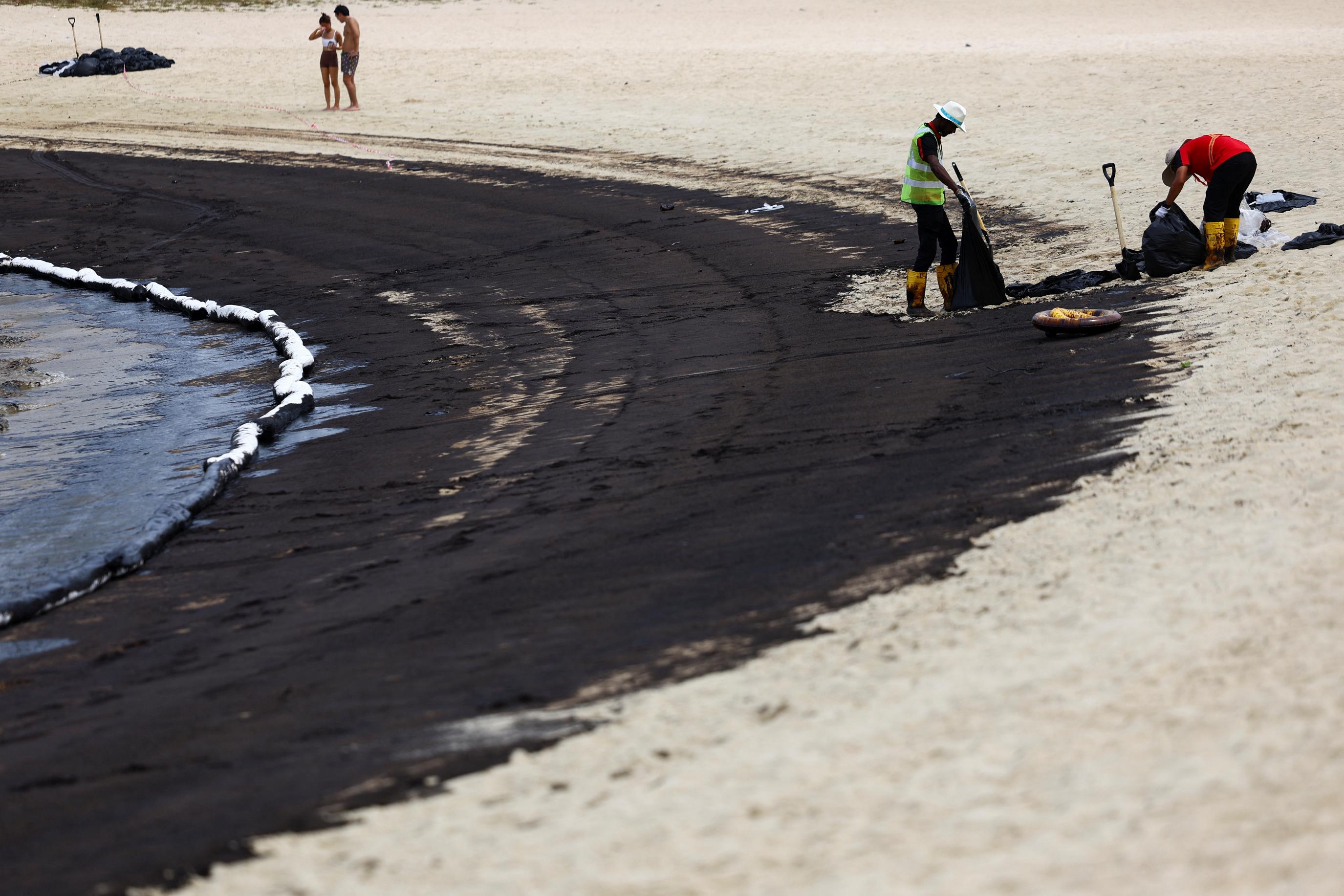 SINGAPORE, June 15 (Reuters) - Beaches on Singapore's Sentosa island were closed on Saturday after an oil spill spread from a nearby shipping terminal to the tourist haven south of the city-state. A Reuters witness saw tape cordoning off the oil-stained waters and sand of Tanjong Beach from visitors. "Oil slick spotted. Clean up in progress. Please stay clear of water," read a sign posted on the beach. An advisory on the Sentosa website said the waters of Tanjong, Palawan and Siloso beaches were closed for cleaning and swimming and sea activities were not allowed. The oil spill had spread from Pasir Panjang Terminal, less than 10 km (six miles) from the island popular with tourists and locals, after a Netherlands-flagged dredger struck a stationary Singapore-flagged bunker vessel on Friday afternoon. The Maritime and Port Authority of Singapore said in a statement on Friday evening some oil from the damaged cargo tank on the bunker vessel had spilled into the water and "the affected cargo tank has been isolated and the spill contained". In an update on Saturday, the authority said patches of oil were observed off Pasir Panjang Terminal and along Tanjong, Palawan, and Siloso beaches. It said it has deployed 16 oil spill response craft "to continue spraying oil dispersants and to collect the oil slicks on the water surface". "There is no impact on navigational traffic. Berthing operations at Pasir Panjang Terminal remain unaffected," the authority said. Sign up here. https://www.reuters.com/business/environment/oil-slick-closes-beaches-singapore-resort-island-2024-06-15/