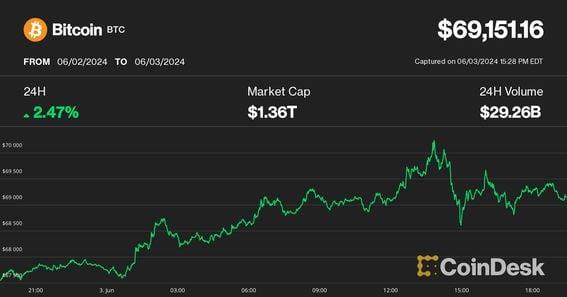 On-chain data shows over 50% of Bitcoin supply remains inactive, a sign of strong long-term conviction in the asset. Bitcoin price dipped to $69,200 amidst profit-taking and broader U.S. stock market movements. Despite negative news, sentiment remains bullish due to long-term holder conviction and anticipation of further spot ETF approvals. Bitcoin (BTC) slid to $69,200 early Tuesday amid profit-taking after briefly crossing the $70,000 level late Monday. Price action across major tokens was mixed. BTC prices moved alongside broader U.S. stock markets, reflecting risky bets in the market. Some meme stocks and tokens jumped more than 100% on the apparent return of influential equity trader Keith Gill. Crypto exchange Bitfinex said in a report on Monday that bitcoin’s slump since March was likely driven by long-term holders selling. However, blockchain data shows the trend has stalled, and investors are accumulating BTC. On-chain analysis firm CryptoQuant shared with CoinDesk in a Tuesday report that 50% of the long-term bitcoin supply was “inactive,” showing no movements or changes in holdings across tracked wallets. This is considered a sign of strong long-term conviction, which may indicate further price gains. As such, the sentiment around bitcoin’s continued growth remains “stubbornly bullish,” with Singapore-based QCP Capital seeing an increase in trading activity. “The market remains stubbornly bullish in spite of negative headlines about Mt. Gox and the DMM hack last week, BTC rallied confidently above $69,000 in Asia,” QCP said in a broadcast message late Monday. “This bullishness is likely to continue as the market waits for the ETH spot ETF to usher in new demand.” “Another reason for persistent bullishness is speculators increasing long positions in other crypto majors in anticipation of additional spot ETF approvals in the near future,” the firm said. Elsewhere, ether (ETH) and dogecoin (DOGE) showed slight losses, while Cardano’s ADA and Solana’s SOL rose as much as 3%. The CoinDesk 20 (CD20), a broad-based index of the largest tokens minus stablecoins, is up 0.41% in the past 24 hours. Among other larger tokens with a market capitalization above $1 billion, dog-themed floki (FLOKI) and synthetic dollar project Ethena’s ENA tokens rose more than 10%. https://www.coindesk.com/markets/2024/06/04/bitcoin-sees-profit-taking-around-70k-amid-stubbornly-bullish-sentiment/