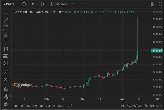 Bitcoin traded at a perfect negative correlation to PAXG in a sign of weak demand as a geopolitical hedge, according to one observer. PAXG spiked as high as $2,923 on Saturday, trading at premium of over 20% to gold's per ounce price of $2,342.90 on Friday. Bitcoin traded at a perfect negative correlation to PAXG in a sign of weak demand as a geopolitical hedge. Prices for PAX Gold (PAXG), a gold-backed digital asset created by Paxos, surged over the weekend as escalating geopolitical tensions in the Middle East catalyzed demand for haven assets. PAXG rose as high as $2,923 on Saturday, trading at a premium of over 20% to the yellow metal's per-ounce price of $2,342.90 at Friday's New York close, CoinDesk data show. As of writing, PAXG still drew a notable premium, trading at $2,471. Meanwhile, bitcoin and other major cryptocurrencies traded under pressure as Iran fired explosives at Israel in retaliation for a suspected Israeli attack on its consulate in Syria on April 1. On Sunday, Iran warned Israel and the United States of a much larger response after Tel Aviv said it would respond to Iran's retaliatory aggression. With a market capitalization of over $446 million, PAXG is the world's second-largest tokenized gold coin. Leading the pack is tether gold (XAUT) with a market capitalization of $581.9 million. PAXG's weekend surge did not spill over into XAUT and other gold tokens. "Geopolitical events create price movements; it is not simple or straightforward to know what the price of gold should be at any given moment," Paxos' spokesperson told CoinDesk in an email. "In addition, the main spot gold markets are only open from Sunday at 6pm until Friday early afternoon. When events occur globally over the weekend, the price of gold could not be referenced against the main spot market because it is closed. Gold has been very volatile recently and even on Friday, gold traded in a $100 range, which is virtually unprecedented," spokesperson added. Gold has surged over 8% in four weeks, while bitcoin has declined by 10%. On Friday, analysts at Goldman Sachs raised its year-end price forecast for gold to $2,700 from $2,300, saying that momentum and retail investors haven't yet piled into the yellow metal. Leading indicator Several traditional market participants closely followed PAG's spike and BTC's slide over the weekend, wondering if the classic risk-off action in the 24/7 crypto market was a sign of things to come in stocks on Monday. "And so now everyone who isn't involved in crypto is watching BTC to gauge the market impact of war cuz it's the only thing that's open when drones fly," Andy Constan, founder of macroeconomic research firm Damped Spring, said on X. Former Bridgewater Executive and CIO of Unlimited Funds Bob Elliot said BTC's perfect negative correlation with PAXG over the weekend dented the leading digital asset's appeal as a geopolitical hedge. "Bitcoin may be many things, but it is not a geopolitical hedge. This weekend was another good empirical test. BTC traded with a near-perfect negative correlation over the last day to PAXG, a gold-backed token. If anything it's becoming an even worse hedge over time," Elliot said on X. April 15, 4:17 UTC: Adds comments from Paxos. https://www.coindesk.com/markets/2024/04/14/gold-backed-paxg-token-spikes-to-29k-amid-geopolitical-tensions/