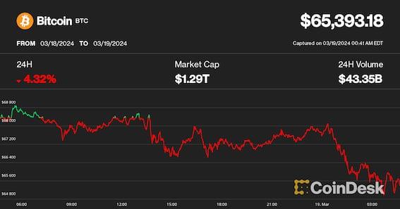 Outflows of GBTC tend to add pricing pressure to bitcoin because of increased selling Bitcoin remains above $65,000 despite highest-ever GBTC outflows. GBTC outflows are occurring due to high fees and ETF competition. Bitcoin (BTC) is down 4% and trading above $65,000 as the selling of Grayscale Bitcoin Trust (GBTC) shares hit its highest level ever. According to data compiled by BitMEX research, outflow from GBTC hit $643 million on March 18. Data from investment firm Farside shows that there's a net outflow from bitcoin ETFs in general to the tune of $154 million. The iShares bitcoin ETF (IBIT) saw the most inflow of $451.5 million, while the remaining products had inflow of approximately $36.7 million. Since the launch of bitcoin exchange-traded funds (ETFs) earlier this year, there have been significant outflows from GBTC – which recently converted into an ETF – because of its higher fees. This selling puts pressure on the price of bitcoin. A recent note from CryptoQuant says that selling pressure is also coming from short term holders of bitcoin taking profit on recent gains. Over the last week bitcoin is down 8.5%, according to CoinDesk Indicies data, but remains up 27% over the past 30 days. https://www.coindesk.com/markets/2024/03/19/btc-maintains-65k-as-gbtc-outflows-hit-highest-level-ever/