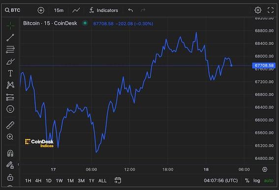 Meme coins soared past $55 billion in market cap, up 11% as traders doubled down on SHIB, WIF, BONK, and newcomer CORGIAI. Bitcoin has rebounded above $67,000K amid pre-FOMC volatility and investor confidence in buying the dip, despite macroeconomic concerns. Meme coins surge, driving the sector's market cap over $55 billion Bitcoin (BTC) changed hands at around $67,800 during Monday's Asian trading hours, as pre-Federal Open Market Committee (FOMC) volatility worked its way through the crypto market, moving major digital assets and pushing up meme coins. "The weekend was filled with both fear and greed as BTC was driven down to $64,500 lows," Singapore-based QCP Capital wrote in a note on Telegram. "BTC has since bounced back above $67,000, and we've seen heavy BTC put selling, which suggests that ‘fear’ has dissipated in BTC, and investors are happy to buy the dip." FOMC risk is also spooking BTC investors, bringing back macroeconomic concern to an asset class buoyed over the last month by optimism over the approval of bitcoin exchange-traded funds (ETFs). Recent U.S. economic data indicated persistent inflation, leading to higher interest rates and a stronger dollar, which fares poorly for risk assets. CME Fed Watch surveys give a 99% chance of interest rates remaining unchanged, while a Polymarket contract suggests the same odds. Meanwhile, meme coins were all the rage over the weekend, pushing the sector's market cap up over $55 billion, an 11% gain, according to CoinGecko data. Top movers included (SHIB), up 10.8%, DogWifHat WIF, up 30%, and CORGIAI up 8.5%. Likewise, the tokens behind the chains these meme coins are issued on are also headed upwards. Solana's (SOL) is up 10.8% to $205, according to CoinDesk Indices data, while Avalanche's {{{AVAX}}} is up 15% to $61. "Solana has once again exploded as the trendiest crypto asset amongst traders with new meme tokens popping nearly every minute," Nick Ruck, COO of ContentFi Labs, said in a note shared with CoinDesk. The CoinDesk SCPXX, which covers smart contract platforms excluding ether, is up 8.2%, beating the CoinDesk 20 (CD20) index, a measure of the largest digital assets, which is up 3.5%. https://www.coindesk.com/markets/2024/03/18/bitcoin-back-above-67k-as-memecoins-push-up-sol-and-avax/
