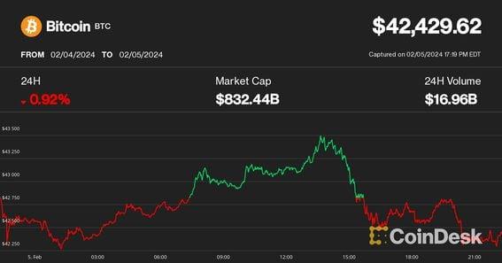 Federal Reserve Chair Jerome Powell reiterated his hawkish stance on rate cuts in a Sunday interview, weighing on risk assets. Cryptocurrencies slid lower Monday with bitcoin nearing $42,000 as soaring U.S. interest rates amid strong economic data, hawkish Powell weighed on prices. Bitcoin could rise to $70,000 by year-end benefitting from favorable macro environment, Markus Thielen said. Crypto markets slumped on Monday as U.S. interest rates continued to soar on strong economic data and Federal Reserve Chair Jerome Powell reiterating his hawkish stance from last week. Bitcoin (BTC), the largest crypto by market capitalization, slipped to $42,200 late Monday from as high as $43,400 earlier in the day. At press time, it was lower by 1.2% over the past 24 hours. Almost all cryptocurrencies endured similar or greater losses during the day, highlighted by the broad-market crypto index CoinDesk20's {{CD20}} 1.3% decline, with 18 assets in that gauge declining. Native token of Chainlink (LINK), a software platform that connects blockchains with the outside world, was the biggest gainer among CD20 constituents with a modest 2% advance during the day. The slump in crypto prices happened as the 10-year U.S. Treasury bond yield jumped another 14 basis points during the day, extending its two-session rise to 30 basis points. Fueling the move was a Sunday night 60 Minutes appearance by U.S. Federal Reserve Chair Jerome Powell at which he confirmed that the Fed has little intention of cutting rates in March, as markets had previously expected. And following Friday's blowout employment numbers, there was more solid economic news on Monday, with the ISM Services index unexpectedly rising to 53.4 in January versus December's 50.5. Key U.S. stock indexes, the S&P 500 and the tech-centric Nasdaq 100, both closed with small declines. Bitcoin to $70K by year-end Despite today's loss, BTC was still holding up above $42,000, a significant support level for prices with buyers stepping in, but risk appetite is currently low as crypto markets lack fresh investment narratives, SwissBlock analysts said in a Monday report. "Exclusive drivers for the crypto market, such as BTC ETFs, have already played out, leaving players waiting for the next significant signal," the report noted. On the longer term, 10x Research analyst and Matrixport head of research Markus Thielen sees the largest crypto to rally to $70,000 by the end of 2024, some 65% higher than current prices. "Supported by the macro environment, monetary tailwinds, the U.S. election cycle, and gradually increasing demand from TradFi investors allocating to bitcoin ETFs, a bitcoin rally to $70,000 appears plausible,” Thielen wrote Friday. https://www.coindesk.com/markets/2024/02/05/bitcoin-slips-towards-42k-as-interest-rates-soar-chainlinks-link-defies-crypto-slump/
