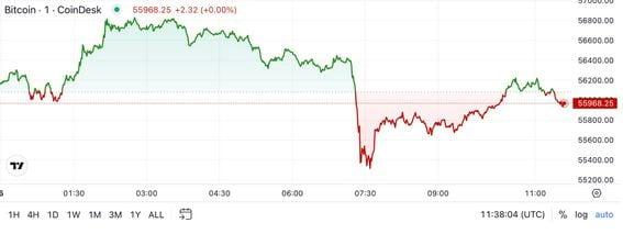 The latest price moves in crypto markets in context for Sept. 6, 2024. Latest Prices CoinDesk 20 Index: $1,773.25 −1.29% Bitcoin (BTC): $56,000.24 −1.27% Ether (ETH): $2,370.13 −0.8% S&P 500: 5,503.41 −0.3% Gold: $2,519.38 +0.09% Nikkei 225: 36,391.47 −0.72% Top Stories Bitcoin fell as low as $55,300 before recovering to trade around $56,100, down 1% in 24 hours and extending its seven-day loss to over 5%. The broader digital asset market as measured by the CoinDesk 20 Index (CD20) has dropped more than 1.3% over 24 hours. The U.S. government is set to release its nonfarm payrolls report for August later. If the reading is weak, as all the other economic data this week has been, it will strengthen the argument for an interest-rate cut of 50 basis points in September. Bitcoin's 200-day simple moving average is in danger of turning bearish as its upward momentum has slowed to a crawl for the first time since October. Since late August, the measure has averaged a daily increase of less than $50, a significant drop from the $200-plus moves seen earlier this year, according to data from charting platform TradingView. As of writing, the 200-day SMA was $63,840. The 100-day SMA recently moved below the 200-day SMA, confirming a bearish crossover. The averages signal a weakening bullish sentiment and growing caution consistent with the increasing macroeconomic uncertainty. At the end of August, the crypto market had dropped 24% from its March peak to $2.02 trillion, JPMorgan said in a research report. The bank highlighted the lack of major catalysts to support crypto assets in the face of challenging macroeconomic factors. Spot ether and bitcoin ETF flows were "somewhat uninspiring," JPMorgan said, adding that many viewed the launch of ETH ETFs as disappointing when compared with the bitcoin versions in January. Spot bitcoin ETF flows also disappointed, recording net outflows of $81 million in August. The bank said it awaits the next catalyst for development and "enhanced retail engagement." Chart of the Day The chart shows the number of ether held in wallets associated with centralized exchanges. The so-called exchange balance has increased by over 263,000 ETH ($624 million) since late August, a sign of investors looking to liquidate their holdings or use coins for derivatives trading. Source: CryptoQuant - Omkar Godbole Trending Posts Telegram Revamps Rules to Allow Moderation of Private Chats Following CEO Pavel Durov's Arrest Visa and Santander Selected by Brazil’s Central Bank for a Second Phase of CBDC Pilot Trump Promises to Embrace ‘Industries of the Future’ Including Crypto, AI https://www.coindesk.com/markets/2024/09/06/first-mover-americas-btc-treads-water-ahead-of-us-jobs-report/