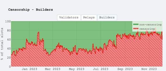 Four of the five biggest "block builders" on Ethereum are excluding transactions sanctioned by the U.S. government, data shows. For many believers in blockchain, the technology's allure lies in its open, uncontrolled nature – where decentralized networks are unfettered by the constraints and biases that shape today's internet. But some researchers and users of Ethereum, the world's second-largest blockchain, are increasingly troubled by data showing a marked increase in censorship – what appears to be a concerted effort by block builders to exclude transactions linked to entities sanctioned by the U.S. government. A turning point came last year when the U.S. government sanctioned Tornado Cash – a "privacy mixing" program on Ethereum that helped people transact without leaving a trace. The Treasury Department's Office of Foreign Assets Control (OFAC) said the program was used by terrorists and other U.S.-sanctioned entities, so it added Tornado's Ethereum-based computer code to the same blacklist as Iran, North Korea and Hamas. In response, some blockchain advocates were defiant; they balked at OFAC's attempt at "censorship" and gloated that Ethereum would be immune to it as a result of its decentralized construction. It hasn't really worked out that way. About 72% of data blocks posted to MEV-Boost, middleware that powers almost all of the validators that write blocks to Ethereum, are now considered "censored," up from about 25% in November 2022, based on research from Toni Wahrstätter, a researcher at the Ethereum Foundation. The metric measures blocks assembled by MEV-Boost "block builders" which, based on statistical analysis, appear to deliberately exclude sanctioned crypto addresses. As for why this is viewed as troubling, "block builders have the authority to decide which transactions (and in which order) they put into their blocks and which they want to censor," Wahrstätter explained in a message to CoinDesk. "This means block builders decide upon the content of the blockchain." Of the five largest block builders, only one of them, “Titan Builder,” claims explicitly that it does not “filter” transactions – a practice corroborated by Wahrstätter’s research. "If Titan would start censoring tomorrow, then Ethereum would be at over 90% censorship," Martin Köppelmann, the founder of Ethereum scaling network Gnosis Chain, said in an interview. "So essentially, we're just one builder away from quite heavy censorship on Ethereum." Sanction-breaking transactions can still sneak their way onto Ethereum, but getting them there typically costs extra and takes longer. Wahrstätter refers to this sort of transaction throttling as censorship – an affront to what crypto is all about. Infrastructure operators might just call it "compliance," a necessary step on Ethereum's journey toward mainstream adoption. It's a marked departure from Ethereum's original pitch – as a network where "code is law," where software replaces middlemen, and where "decentralized" networks can operate outside constraints from "centralized" companies and governments. Wahrstätter's research gives a glimpse into a growing shift in Ethereum's under-the-hood transaction apparatus. The network's infrastructure has quietly become dominated by a few big players: trading bots and block builders that touch virtually all of the transactions issued onto Ethereum before they officially hit the chain's ledger. How Ethereum works Ethereum is a pretty simple network at its core: When a user submits a transaction, it isn't immediately added to the blockchain. Instead, it goes into a mempool – a waiting area for other yet-to-be-processed transactions. "Validators" then swoop in and organize those transactions into big groups, called blocks, which they officially add to the blockchain in exchange for fees and newly-minted ETH. This pipeline has become more convoluted in recent years as people have developed strategies to earn maximum extractable value or MEV, which is the extra profit that one can squeeze from Ethereum by previewing upcoming transactions in the mempool. Smart coders have figured out ways to "front-run" trades from other users, such as buying or selling tokens just before others to make an easy profit. They've also found ways to exploit spur-of-the-moment arbitrage opportunities – moving tokens between separate exchanges just before market prices will shift due to some other order in the queue. Today, 90% of validators aren't assembling blocks themselves. Instead, they use MEV-Boost to outsource this work to third-party "builders" – bots that put together MEV-optimized blocks and hand them to validators. From relayers to block builders Flashbots introduced MEV-boost as a way to spread out the riches of MEV, but its decentralized marketplace of "builders," "searchers" and "relayers" has quietly transformed how activity travels through Ethereum, cementing little-understood infrastructure at key chokepoints in the chain's transaction pipeline. Soon after the U.S. government sanctioned Tornado Cash, MEV-Boost's "relayers" were blamed for censoring Ethereum. Relayers are third-party software operators that hand transactions from builders to validators, and in November 2022, Wahrstätter found that 77% of them stopped passing along blocks with OFAC-sanctioned transactions. This large percentage resulted, in part, from the fact that a small number of relayers were available in MEV-Boost's early days, and the most popular ones were filtering out OFAC transactions. After a blowback from the Ethereum community, several "non-censoring" relayers entered the MEV-Boost fray, and it looked like the tide was turning back in favor of network neutrality. Today, only 30% of relayed blocks are "censored," by Wahrstätter's definition. But things seem to have swung in favor of OFAC's sanctions in recent months, largely due to a shift in behavior among MEV-Boost's builders, rather than its relayers. Just five buil