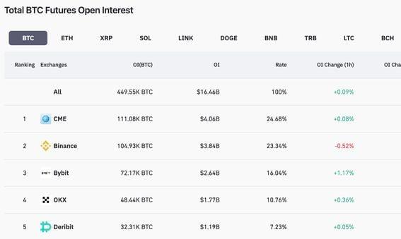 CME's rise to the top rank highlights the growing institutional demand for bitcoin, as the venue is almost exclusively used by large traditional financial institutions, one analyst noted. CME Group just took the top spot on the list of world's biggest bitcoin (BTC) futures exchanges, replacing Binance for the first time in two years. Open interest – derivatives industry jargon for the number of existing contracts – on Thursday hit $4.07 billion worth of positions at CME, representing a 24.7% share of the entire bitcoin futures market, CoinGlass data shows. Binance was at $3.8 billion. CME is a stalwart of traditional finance, a Chicago-based firm whose business covers a wide span of financial, commodity and agricultural futures and options. The timing of it overtaking Binance, a crypto-focused exchange, is poignant. Wall Street firms like BlackRock are increasingly steering the narrative around bitcoin and the rest of crypto, by trying, for instance, to introduce bitcoin and ether (ETH) ETFs in an attempt to open up crypto investing to a broader group of people. Such financial heavyweights are accustomed to doing business on a highly regulated exchange like CME, as opposed to Binance, which has run into trouble with U.S. regulators. "As market participants seek regulated venues and highly liquid products to hedge market volatility and manage price exposure, we continue to see increased institutional interest across our crypto suite," said Tim McCourt, global head of financial and OTC products at CME Group. "Market participants view CME Group as a valued source for risk management." The change in rankings occurred as the crypto market endured a major leverage flush-out amid wild price swings on Thursday. The aggregate bitcoin open interest dropped by $2 billion from $12 billion. The decline impacted Binance traders disproportionately more than CME market participants. Bitcoin first surged to an 18-month high of almost $38,000 on Thursday, then sharply retraced toward $36,000 after a filing showed a corporate entity named "iShares Ethereum Trust" had been registered in the state of Delaware. A similar move happened before BlackRock – the owner of iShares – filed for a spot BTC exchange-traded fund (ETF) in June. CME's rise to the top happened gradually this year and is a significant development as it highlights the growing demand from institutional market participants to trade the largest and oldest crypto asset. A paper published by Bitwise Asset Management in 2020 said that the CME bitcoin futures market leads the spot market in a consistent and statistically significant manner. "The CME has been gaining market share for almost all of 2023, but these gains intensified over the past few weeks as market excitement around the BTC spot ETF applications soared," David Lawant, head of research at trading platform FalconX, told CoinDesk in a note. "Given the CME is a venue used almost exclusively by large traditional financial institutions, it shows how much interest there has been from this audience in crypto," Lawant added. Binance didn't respond to a request for comment, though CEO Changpeng Zhao posted a screenshot of this article on X (formerly Twitter) and wrote: "U.S. institutions are moving into crypto. What about your country?" https://www.coindesk.com/markets/2023/11/10/cme-topples-binance-as-top-bitcoin-futures-exchange-as-crypto-etf-excitement-soars/