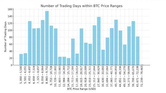 Defying typical September trends, bitcoin's resilience hints at a potential breakout from its prolonged downtrend. Bitcoin defies the odds with a 22% surge from the month's low, challenging September's bearish reputation. All eyes are on the $65,200 mark as bitcoin approaches a pivotal point in its trading channel. A 10% price increment analysis reveals bitcoin's potential for unexpected, significant moves. Bitcoin (BTC) has shown remarkable resilience this September, a typically bearish month, surging 22% from its monthly low of about $52,500. All eyes are now on the critical $65,200 mark, with market participants watching closely to see if it can break out of the current downtrend. Since climbing to a record high back in March, the largest cryptocurrency has been trading in a prolonged downward channel, creating a sense of ennui for many investors. To gain insights into bitcoin’s trading behavior, consider an analysis using a 10% price increment system. This provides a fairer comparison than using fixed dollar amounts, which can distort analysis as the price increases. By focusing on percentage changes, it's possible to better understand how bitcoin moves relative to its own value, rather than being skewed by absolute price changes. The analysis reveals that the longest trading range occurred between $8,865 and $9,752, lasting for 155 days. That's not surprising as it coincided with the 2018-2019 market cycle. During this time, bitcoin was consolidating after the post-2017 bull-market peak and before the recovery that started in mid-2019. Notably, this excludes the depths of the bear market from November 2018 to May 2019, when bitcoin was trading below $5,000. More recently, bitcoin spent 111 days between $54,271 and $59,699. And it has so far spent 126 trading days in its current range of $59,700 to $65,670, a period that could extend if history repeats itself. These prolonged periods of consolidation aren't unprecedented, as seen during the $8,000 to $12,000 range, where bitcoin traded for hundreds of days. This historical perspective suggests that bitcoin can continue to trade in its current range until the end of October without breaking out, based on past behavior. It’s a stark reminder that bitcoin often moves in extended cycles of consolidation, only to make significant moves when least expected. As bitcoin approaches critical levels, it’s essential to remain patient and consider these long-term trends. The market’s cyclic nature implies that while this downtrend may seem never-ending, breakouts, when they do come, often bring significant opportunities. Whether or not bitcoin breaks through $65,200 soon, understanding these trading ranges provides invaluable insight into the potential future direction of the market. Muted drawdowns in the current cycle These periods of consolidation and reduced volatility can be seen in a positive light. In the current cycle, drawdowns are the most muted compared to previous cycles, with the largest decline being just under 30%. This stability is crucial for new institutional investors, who may be unable to handle extreme volatility swings. Bitcoin is currently up by less than 1% in the third quarter, with only five trading days remaining. It's been a challenging period for bitcoin, with headwinds such as a sale by the German government and Mt. Gox redemptions. Moreover, the third quarter is typically the weakest for bitcoin, according to Coinglass. https://www.coindesk.com/markets/2024/09/24/bitcoins-trading-range-extends-beyond-125-days-as-september-shows-resilience/