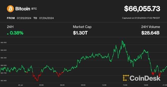 Solana's SOL and Ripple's XRP were notable outperformers. The Nasdaq and S&P 500 on Wednesday each suffered their worst declines since late 2022, but the price of bitcoin (BTC) mostly held up, remaining around the $66,000 level where it was a day earlier. The broad-market crypto benchmark CoinDesk 20 Index was also flat over the past 24 hours, with Solana's SOL and Ripple's XRP outperforming the broader market, advancing 3% to 4% over the same period. Avalanche (AVAX), Uniswap (UNI) and Ethereum Classic (ETC) were lower by 3% to 4%. Ether's (ETH) price action disappointed investors despite a fairly successful spot ETF debut Tuesday, with ETH dipping as low as $3,300, an almost 4% decline over the past 24 hours. It also hit its weakest price in two months versus bitcoin. "The real money interest was strong enough to deem the launch a marginal success, aligning with general expectations, but not yet strong enough to demand a repricing," analysts at crypto market maker Wintermute said. "This may come in subsequent sessions." The moves came amid a drop in the U.S. stock market, with the Nasdaq plunging 3.6% and the S&P 500 slumping 2.1% amid disappointing earnings results from market bellwethers like Alphabet (GOOG) and Tesla (TSLA). With ether ETFs launched, traders may shift their focus to an upcoming U.S. economic data release on Friday and Donald Trump's speech scheduled for Saturday at the Nashville Bitcoin conference. https://www.coindesk.com/markets/2024/07/24/bitcoin-holds-up-as-tech-stocks-plunge-ether-sinks-a-day-after-etf-launch/