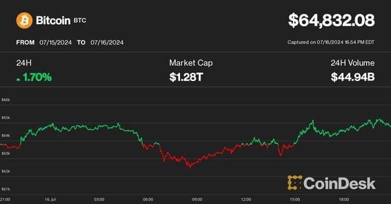 The Mt. Gox distribution will not end the bullish trend, CryptoQuant's CEO noted. The crypto rebound from last week's low showed no signs of stopping with bitcoin (BTC) hitting its highest price in four weeks on Tuesday. BTC surged above the $65,000 level for the first time since late June, shrugging off a dip below $63,000 earlier in the day as wallets related to the defunct Mt. Gox exchange's estate moved $2.8 billion worth of BTC, likely preparing to distribute assets to creditors in the coming days. The crypto rally was broad-based, showcased by the market benchmark CoinDesk 20 index (CD20) gaining nearly 3% over the past 24 hours with 16 of the 20 constituents in the green during the day. The strongest performer among altcoin majors was XRP (XRP), the native token of the XRP Ledger payment network, up 9% during Tuesday and extending its weekly gains to 35%. The token's rally is supported by whales, or large asset holders, increasing their holdings, in a sign conviction in higher prices, crypto data provider Santiment pointed out. Another catalyst was traditional derivatives trading powerhouses CME and CF Benchmarks announcing indices and reference rates for XRP. These offerings may boost institutional adoption for XRP, Brad Garlinghouse, the CEO of closely related blockchain payments firm Ripple, suggested. Mt. Gox sell pressure "overestimated" As Germany's BTC sales are behind, crypto investors mull how much of the $9 billion bitcoin about to be distributed to creditors will be dumped on the market to capitalize on the asset's appreciation after ten years of waiting. Ki Young Ju, CEO of crypto analytics firm CryptoQuant, argued that fears over the sell pressure is "overestimated" and will not derail the crypto rally underway. "I believe this distribution won't end the bullish trend, as the coins are expected to react to market sentiment similarly to the existing bitcoin supply," he explained in an X post. "Unlike the German government selling, Mt. Gox creditors aren't forced to sell, so it's not purely sell-side liquidity." Well-followed crypto and macro analyst Alex Krüger estimated a 10% price drop at maximum for bitcoin if creditors dump their reclaimed assets en masse, Ju pointed out. CoinMetrics also said that the market should absorb Mt. Gox creditors liquidating their assets if they happen orderly and spread through weeks based on bitcoin's current market depth and trading volumes. "The distribution of ~65,000 BTC (worth approximately $1.95B at current prices) could potentially be absorbed by the market over a period of a couple weeks without causing severe disruptions, assuming the liquidations are done gradually and across multiple exchanges," CoinMetrics analysts wrote in a Tuesday report. "These findings, however, are only suggestive of the depth and maturity of the BTC market, but should assuage fears of liquidity shortage in the near-term." https://www.coindesk.com/markets/2024/07/16/bitcoin-hits-65k-shaking-off-mt-gox-payout-worries-xrp-leads-crypto-rally/
