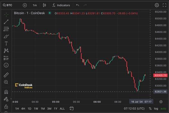 One observer said the movement of coins was likely a part of the exchange's creditor reimbursement plan. BTC dips 3% on renewed movement of coins by defunct crypto exchange Mt. Gox. One observer said the movement of coins was likely a part of the exchange's creditor reimbursement plan. Bitcoin (BTC) faced renewed selling pressure on Tuesday after blockchain data showed defunct exchange Mt. Gox started moving coins internally for potential repayments to creditors. The leading cryptocurrency by market value dipped 3% briefly falling below $63,000, after testing the $65,000 mark during the early Asian trading hours, according to CoinDesk. The decline happened as the wallet associated with Mt. Gox initially moved 0.021 BTC ($1,000) to the blockchain address: 1EoZd1QNCiN9JbnsqvLRDbHKLygAsXHg3V. The small movement, supposedly a transfer test, was followed by a significant movement of 44,527 BTC ($2.84 billion) to an internal wallet, according to data tracked by Arkham Intelligence. The movement was likely a part of the repayment plan, according to on-chain sleuth Lookonchain. Cryptocurrency exchange Kraken has reportedly confirmed creditor repayments, saying it has received funds and will distribute them over the next two weeks. Mt. Gox, once the largest bitcoin exchange in the world, went bust in 2014 after it lost hundreds of thousands of bitcoin in a hack. The exchange began repaying its debt on July 4, spurring fears of mass selling by creditors who have waited for reimbursements for a decade. Bitcoin's drop weighed over the broader market, with ether, the second-largest digital asset by market value, dipping over 2.5% to $3,400. The CoinDesk 20 Index (CD20), a broader market gauge, fell over 2% to 2,182. Update (11:21 UTC): Added detail about Kraken confirming Mt. Gox creditor repayments. https://www.coindesk.com/markets/2024/07/16/bitcoin-dips-below-63k-as-mt-gox-moves-28b-btc-to-internal-wallets/