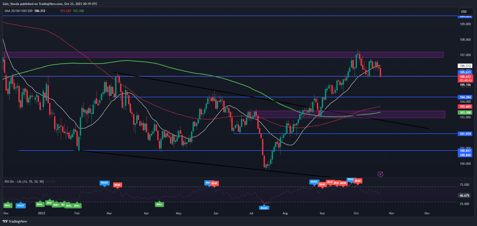 DXY, GBP/USD PRICE, CHARTS AND ANALYSIS: GBP/USD Looks to Recover with a Trendline Break Pending and UK Labor Data Ahead Tomorrow. US Dollar Index Retreat a Welcome for Cable Bulls as Geopolitical Concerns Linger. IG Client Sentiment Shows Retail Traders are Net Long on Cable. As We Take a Contrarian View to Client Sentiment at DailyFX, Are We in for Further Downside? DOLLAR INDEX (DXY) The Dollar index has had an intriguing start to the week holding steady in early trade as long-term US Yields helped underpin the US Dollar. However, a significant retreat in US Yields since the start of the US session has seen the DXY make a significant move lower helping risk assets and all dollar denominated asset classes. Dollar Index (DXY) Daily Chart Source: TradingView, Chart Created by Zain Vawda The move in the DXY should not come as a complete surprise given that last week’s threats of escalation in the Middle East failed to inspire a break above the 107.00 mark. This could’ve been seen as a sign that DXY bulls may be growing restless, and a deeper retracement may be needed. The question now is whether this will remain sustainable moving forward? Looking at the rest of the week and it could prove to a tricky one for the DXY as we do have some high impact data events which could provide support for the Dollar. US Q3 GDP is expected to be positive and robust while US PCE Data (Feds preferred inflation gauge) is expected to remain hot. If this is the case, we could be in for a week of two halves, with DXY weakness till Wednesday before a notable recovery to end the week. Definitely worth paying attention to. GBPUSD EYEING A TRENDLINE BREAK WITH UK LABOR DATA AHEAD Cable has been on the backfoot for quite some time with a recent attempt at a rally met with fierce selling pressure on October 12. Now a lot of the pressure on GBPUSD in recent times has been Dollar based and with Dollar weakness today we are seeing a rally at the moment with GBPUSD up around 100-pips at the time of writing. Tomorrow does bring some UK labor data with positive numbers likely to help Cable continue posting gains. A weak print here could leave the GBP exposed, with a return of USD strength likely to wipe out gains pretty quickly. The USD still has a key role here as I am not yet convinced that a DXY retracement will last through the week with the US data already discussed. My other concern remains the Geopolitical situation in the Middle East which continues to change every couple of hours. The US have been vocal of military intervention and such a move could give the DXY renewed impetus on safe-haven demand. Please keep a close eye on the developments in the Middle East as it could result in quick changes in risk appetite. For all market-moving economic releases and events, see the DailyFX Calendar TECHNICAL OUTLOOK AND FINAL THOUGHTS GBPUSD is finally approaching the long-term trendline which has been in play since July 14 with Cable having decline about 1000 pips since. It appears the October 4 low may have been a bottom as we have since changed structure by printing a higher high and higher low with today's rally looking like the beginning of a new higher high leg from a price action standpoint. If Cable is able to break above the trendline there is the 1.2300 level which could prove sticky with the 50 and 200-day MAs resting just above at 1.2399 and 1.2443 respectively. A break above these two areas could see the long-awaited return to the 1.2500 psychological level. Alternatively, looking at the potential for a break to the downside and the first hurdle is the recent resistance turned support at the 1.2200 level before the recent higher low at the 1,2100 level becomes an area of interest ahead of the 1.2000 handle. Lots to unpack given the ever-changing market conditions, but opportunities may prove aplenty. Key Levels to Keep an Eye On: Support levels: 1.2200 1.2100 (Recent Swing Low) 1.2000 (Psychological Level) Resistance levels: 1.2300 1.2399 (50-day MA) 1.2500 GBP/USD Daily Chart, October 23, 2023 Source: TradingView, Created by Zain Vawda https://www.dailyfx.com/news/us-dollar-index-dxy-update-us-dollar-retreats-with-gbpusd-eyeing-a-trendline-break-20231023.html