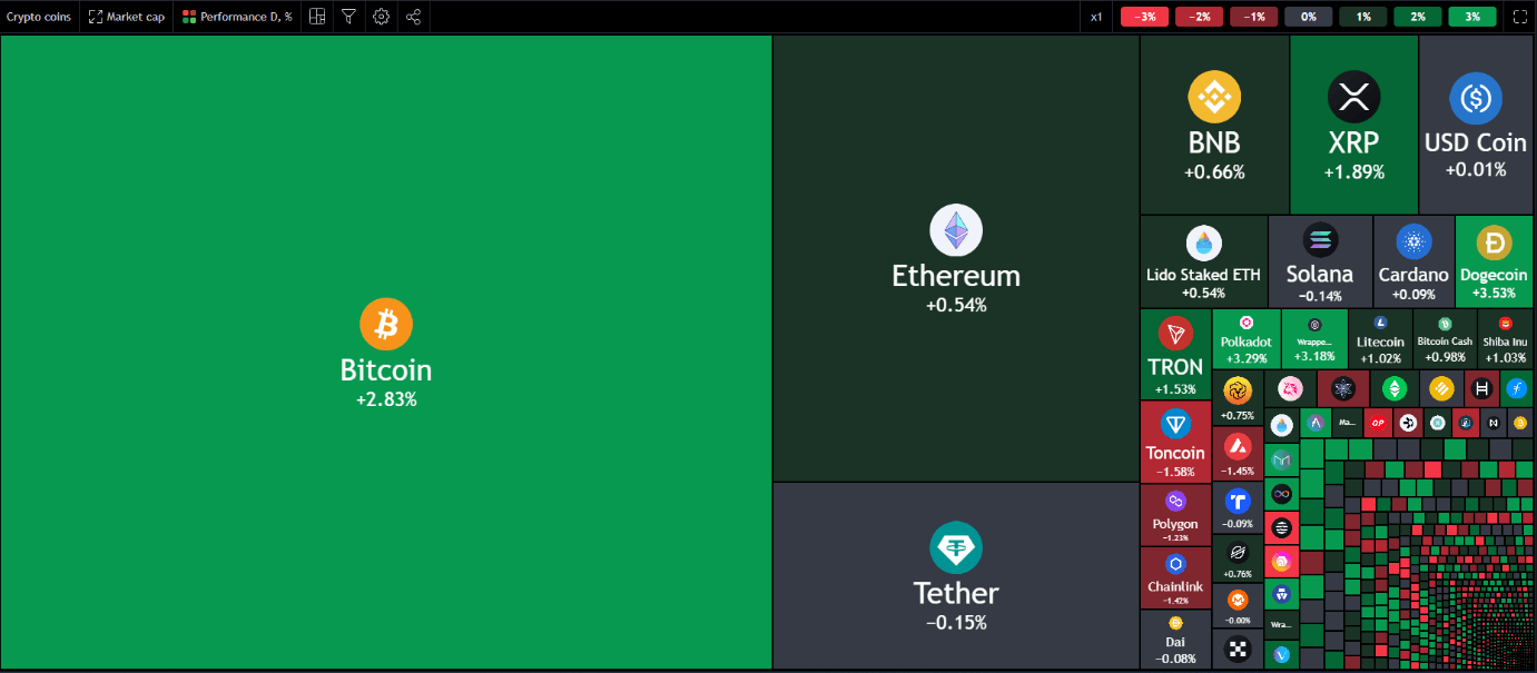 BITCOIN, CRYPTO KEY POINTS: Bitcoin Flies to 31k as Optimism Improves and Hopes for a Spot BTC Approval Rises. Coinbase is Looking to Make a Final Push on SEC Charges. Bulls Appear in Control of Bitcoin but the RSI Remains a Concern. BITCOIN RALLY GATHERS PACE AS ETF OPTIMISM BUILDS Bitcoin prices have continued their upward trajectory following a spike last week on the Blackrock Spot ETF application. The news turned out to be false but optimism continues to grow coupled with positive news for the cyrpto industry as a whole and the result is the current rally beyond the 30k mark. Source: TradingView As you can see from the crypto heatmap above and the majority of coins are higher today while crypto companies appear to be benefitting as well. Coinbase being an example and the reason I am using them lies in the pending court case between the SEC and Coinbase. The crypto platform is expected to make a final case on Tuesday for a judge to hopefully save it from the SEC and the charges of unregistered-securities. According to sources familiar with the matter the Company is expected to double-down on familiar arguments. The SEC has not shown that any actual contracts existed while violating the “major question doctrine” that says Federal Agencies have no business regulating novel areas that are awaiting congressional action. Coinbase has been making a steady move higher from the back end of last week. The recent rally has seen a shift in the Crypto fear and greed index which has improved from a 47 reading last week to 53 this week. This is just below the greed area and could be a good sign for both Bitcoin and Crypto markets as a whole. Source: FinancialJuice SPOT ETF APPROVAL COULD SEE HUGE INFLUX OF INSTITUTIONAL FUNDS The main catalyst for this quarter in my opinion is the spot Bitcoin ETF with the spike last week a sign of the possibilities. We have heard from the Blackrock CEO among others who have said they are fielding an unprecedented number of calls from clients who would like to diversify their portfolios in Crypto as well. I have spoken about this in length in my Q4 Bitcoin Outlook and it remains my assertion that a spot Bitcoin ETF could be game changer. Some analysts are predicting as much as 10-20% gains in Bitcoin on the immediate approval followed by a massive influx of institutional investors to the crypto market and predominantly Bitcoin of course. TECHNICAL OUTLOOK AND FINAL THOUGHTS From a technical standpoint BTCUSD is following the perfect breakout, retest and continuation model following a trendline break. We have no printed two golden cross patterns in quick succession as the 20-day MA has broken above the 50 and 100-day MAs. A daily candle close above the 30k psychological mark remains key today and loos set to materialize. Immediate resistance rests at around the 31.5K mark and could result in some pullback as the 14-day RSI remains uncomfortably close to highs and may give bulls something to consider moving forward. Key Levels to Keep an Eye On: Support levels: 30500 30000 28900 Resistance levels: 31500 32000 32520 BTCUSD Daily Chart, October 23, 2023. Source: TradingView, chart prepared by Zain Vawda https://www.dailyfx.com/news/bitcoin-breaks-psychological-30k-level-as-spot-etf-approval-hopes-grow-20231023.html