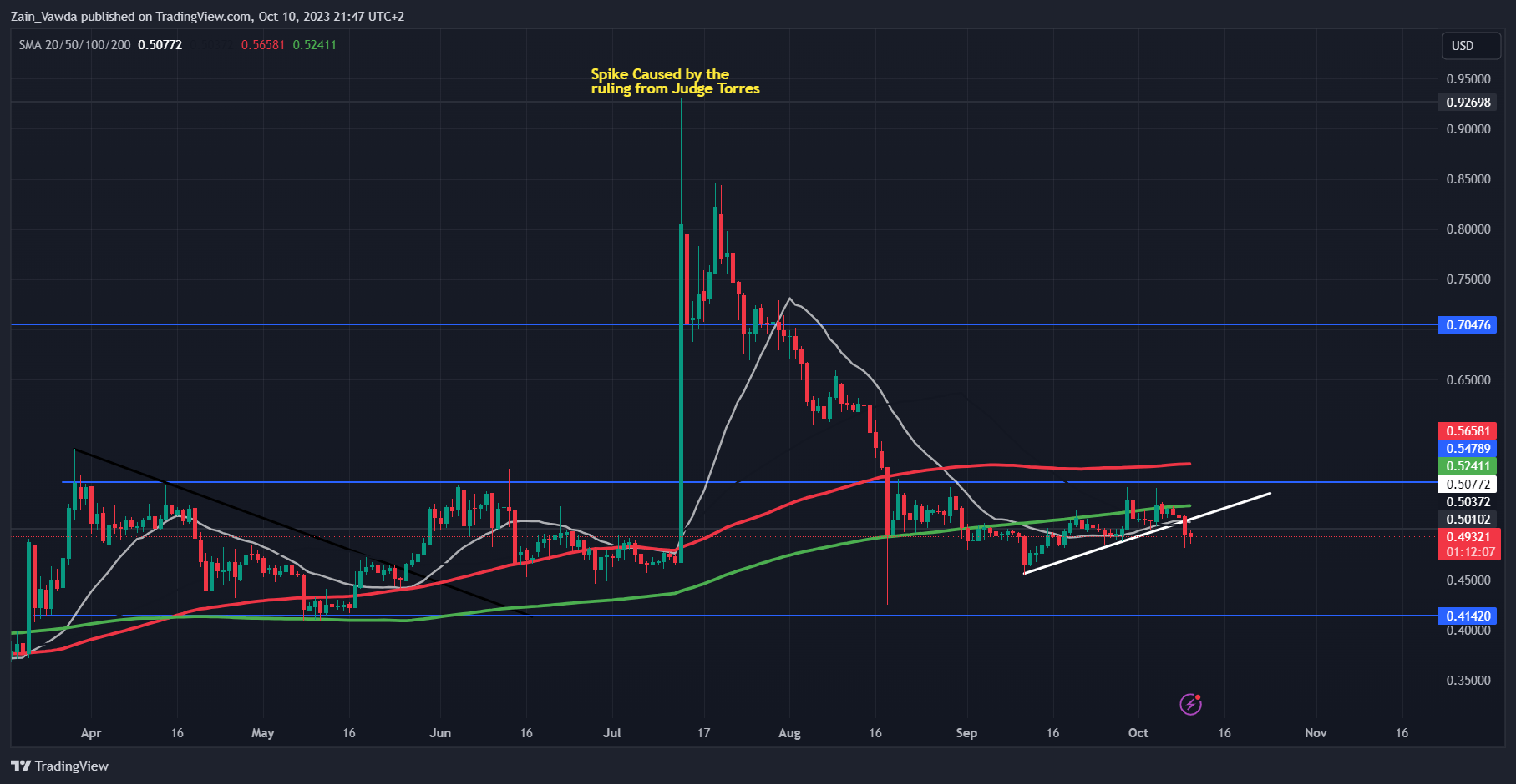 BITCOIN, RIPPLE KEY POINTS: Bitcoin Prices Struggle at 28k Hurdle Once More as Death Cross Pattern Adds to Uncertainty. Ripple Receives Positive News on Multiple Fronts but Still Fell Over 3% on Monday. Further Downside Ahead? Rumours Are that the SEC May Drop the Case Against Ripple Following the Recent Ruling, While the BIS has Added Ripple to its Taskforce for Cross Border Payments. Bitcoin and Ripple have not enjoyed the best of weeks and for once this hasn’t had a lot to do with the Geopolitical situation in the middle east. There have been some developments particularly around ripple which are interesting but not really reflected in the price of XRPUSD as yet. Ripple also has had to deal with the resignation of CFO Kristina Campbell who joined Maven Clinic as its CFO. The move however seems to be a cordial one with as Campbell took to Linkedin to thank the Ripple team for making the past few years memorable. FEDERAL COURT DENIES INTERLOCUTORY APPEAL BY SEC XRP had enjoyed a decent enough Q3 even if it failed to hold onto the gains made post the decision by Judge Torres. A lot of this was down to news that the SEC was to launch an interlocutory appeal, which seemed to have dampened the spirits of XRP bulls. On Monday, October 3 the Federal Court denied the SEC request to certify its interlocutory appeal. Judge Torres stated that to grant the SEC’s request for a certification, she would have to find, among other matters, a controlling question of law for which there was a “substantial ground” for a difference of view. However, this was not the case here, she claimed. However, the decision by Judge Torres has failed to capitalize on the decision with Ripple falling around 3.2% yesterday. This also could have been down to the broader risk-off sentiment which drove markets early on Monday. Another reason why the drop off in XRP is particularly interesting is down to the recent decision by the Bank of International Settlement to add Ripple to its interoperability taskforce. This means that Ripple is now a part of the taskforce established for cross border payments. This should have been a huge positive for the payment service provider but has not yet materialized in the price of XRPUSD. Looking at the crypto fear and greed index and we have seen a recovery over the past month from fear to neutral which is a slight positive for crypto markets as a whole. There is a belief among many in the crypto space that with the ruling last week by Judge Torres the SEC could choose to drop their case. Given the disdain showed toward the crypto industry by the SEC i wouldn’t hold my breath and will rather wait for an official announcement on the matter. TECHNICAL OUTLOOK ON RIPPLE XRP has been on a steady decline since the spike in July after the initial ruling by Judge Torres. This week however has seen break the ascending trendline which had been in play since September 11. A retest of the 0.45 mark appears to be on the cards in the near term while a visit to the key support area around the 0.41 mark also gains traction. A really interesting couple of weeks ahead for Ripple and definitely one I will be keeping a close eye on. XRPUSD Daily Chart, October 10, 2023. Source: TradingView, chart prepared by Zain Vawda TECHNICAL OUTLOOK ON BTCUSD From a technical standpoint BTCUSD has once again failed at the 28k mark which remains a key area of resistance further strengthened by the presence of the 100 and 200-day MA. Price is currently stuck between the MAs with 20 and 50-day MAs resting just below the current price providing a modicum of support. What is more worrying for me personally is that we have just had a death cross pattern with the 100-day MA crossing below the 200-day MA hinting at the potential for further downside. BTCUSD does remain vulnerable below the 28k and more importantly the psychological 30k mark. As long as we fail to see a sustainable move above these levels a retest of the 25k mark or lower remains a real possibility. BTCUSD Daily Chart, October 10, 2023. Source: TradingView, chart prepared by Zain Vawda https://www.dailyfx.com/news/bitcoin-faces-death-cross-as-xrp-fails-to-capitalize-on-appeal-ruling-20231010.html