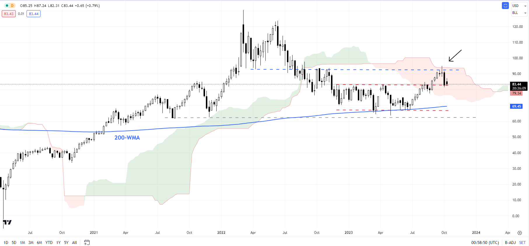 CRUDE OIL, WTI, NATURAL GAS, NG - OUTLOOK: Crude oil has retreated from stiff resistance area. Natural gas appears to be holding gains following the recent bullish break. What is the outlook for crude oil and natural gas and what are the key levels to watch? Crude Oil: Holds below crucial resistance Crude oil has pulled back from a stiff converged barrier, including the Ichimoku cloud on the weekly charts and the October high of 93.00. Oil needs to cross above this resistance to be able to capitalize on the bullish breakout in September above quite a few times tested resistance on a horizontal trendline since the end of 2022, as highlighted in the previous update. See “Crude Oil to Test $100? Natural Gas is not Out of the Woods Yet,” published September 17. Crude Oil Weekly Chart Chart Created by Manish Jaradi Using TradingView The breakout from the multi-month sideway zone triggered a double bottom (the March and May lows), pointing to a potential rise toward 103. The question then comes up – given the sharp retreat in the recent session, is the rebound over? Probably not. There is no doubt that the immediate upward pressure has faded somewhat (given the fall below the resistance-turned-support at about 84.00), it is too early to say that the bullish move is over. Crude Oil Daily Chart Chart Created by Manish Jaradi Using TradingView That’s because crude oil continues to trade above the vital cushion zone, including the 200-day moving average, the 89-day moving average, and the August low of 77.50. A break below 77.00-81.00 is needed to confirm the rebound was over. Natural gas: Stabilizes after breakout Natural gas is holding gains following the break earlier this month above crucial resistance at the March & August highs of 3.03. The cross above has triggered a significant break out from an eight-month-long sideways range, pointing to a rise to around 4.00-4.10, based on the price objective of the pattern. For the first time since the end of 2022, has risen above the 200-day moving average and a decisive break above the 89-day moving average, suggesting that the base building may have taken place. For more details see “Bullish Natural Gas: Base May Have Been Built,” published October 9. Natural Gas Daily Chart Chart Created by Manish Jaradi Using TradingView Natural gas faces immediate resistance at 3.25 (the 23.6% retracement of the November 2022-February 2023 fall, the stronger barrier at 4.20 (the 50% retracement. As highlighted in the previous update, natural gas needs to stay above the August low of 2.40 for the bullish bias to remain intact. Immediate support is at 3.03. https://www.dailyfx.com/news/is-the-rebound-in-crude-oil-over-natural-gas-holds-gains-after-bullish-break-20231013.html