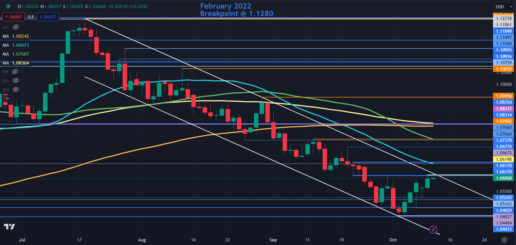 Euro, EUR/USD, US Dollar, EUR/JPY, Japanese Yen, EUR/CHF, Swiss Franc, Trend, Range - Talking Points Euro bulls have been cheering against the US Dollar this week after a rally A plunge in EUR/JPY last week proved to be unsustainable with a solid bounce EUR/CHF looks to be in the range for now. Will EUR/CHF break out? EUR/USD TECHNICAL ANALYSIS EUR/USD jumped higher again overnight as it continues to rally off the eleven-month low seen last week at 1.0448. The peak seen overnight was unable to overcome a breakpoint and prior high near 1.0520 and it may continue to offer resistance ahead of a descending trend line. Further up, resistance could be at another prior peak at 1.0673 which coincides with the 34-day simple moving average (SMA). Similarly, resistance might be near 1.0770 where there is a recent high and the 55-day SMA. Above those levels, the 100- and 200-day SMAs may offer resistance near the breakpoint at 1.0830. Despite the recent run-up, EUR/USD remains in a descending trend channel and with the price below these medium and longer-term SMAs, overall bearish momentum could be intact until these SMAs have been vanquished. On the downside, support might lie near the breakpoints and lows of early 2023 that were tested recently with 1.0480 and 1.0440 as potential levels of note. EUR/USD DAILY CHART Chart Created in TradingView EUR/JPY TECHNICAL ANALYSIS EUR/JPY appears to have rejected the move lower of last week when it traded down to a three-month low of 154.39. That dip broke below the September low and the 55-day Simple Moving Average (SMA) before closing back above all of them in the proceeding sessions. The sell-off also broke below the lower band of the 21-day simple moving average (SMA) based Bollinger Band. After closing back inside the band, a run higher ensued and the price has since consolidated back within the range. A feature of Bollinger Bands is to easily identify the level of volatility in the market by the width of the bands. The current relative narrowness of the bands and the rejection of the move lower might suggest that there is a lack of directional conviction for EUR/JPY for now. This may provide opportunities for range trading strategies. To learn more about range trading, click on the banner below. Support could be at the breakpoint and a recent low toward 156.50. On a sustained move lower, the levels to watch might be at the previous lows and breakpoints of 154.39, 153.45, 151.60, 151.40 and 151.07. On the top side, the recent highs of 158.65 and 159.76 may offer resistance. EUR/JPY DAILY CHART Chart Created in TradingView EUR/CHF TECHNICAL ANALYSIS EUR/CHF has been contained and trading between 0.9500 and 0.9700 for 3 months in what appears to be a range trading environment. This seems to be a characteristic of EUR/CHF from time to time. The 10-, 21-, 34-, 55- and 100-day SMAs are all grouped together within this range, which may confirm a lack of direction for EUR/CHF, not too dissimilar to EUR/JPY above. If either side of that range is penetrated, a breakout trade opportunity may evolve. To learn more about breakout trading, click on the banner below. Support might be at an ascending trendline, currently near 0.9535 ahead of the previous lows at 0.9516 and 0.9408. On the upside, resistance could be at the 100-day SMA which is currently near 0.9650, ahead of the prior peak and breakpoints at 0.9694, 0.9706 and 0.9723. EUR/CHF DAILY CHART Chart Created in TradingView https://www.dailyfx.com/analysis/euro-technical-outlook-trend-versus-ranges-for-eur-usd-eur-jpy-and-eur-chf-20231011.html