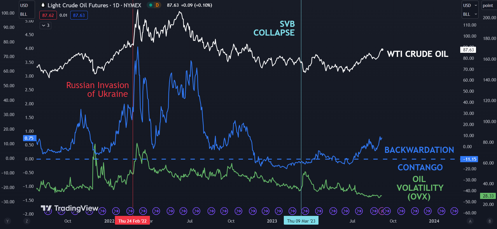 Crude Oil, WTI, Brent, Saudi Arabia Russia, OPEC+, EIA, API, OVX – Talking Points Crude oil leapt over hurdles overnight as production cuts are pushed further out Inventory data show US demand to be strong and solid ISM number supports a robust outlook If oil prices keep going up and the US economy is strong, will another Fed hike hit WTI? The crude oil price scaled to new heights again today as traders and hedgers weigh production cuts and a continuing run down of stockpiles. Earlier this week Saudi Arabia and Russia committed to maintain their production cuts through to the end of this year. The cuts of 1 million and 300k barrels per day respectively. The squeeze on supply appears to be having the desired effect of pushing prices higher in the near term but could have unintended consequences in the long run if the price of energy ramps up significantly over an extended period. Aside from potential demand destruction, the Federal Reserve has made it clear that they are resolute in its fight on inflation. If the cost of energy leads to consistently higher prices at the pump, it might contribute to keeping rates higher for longer than would otherwise be the case. Overnight the US ISM services PMI for August printed at 54.5, notably above forecasts of 52.5 and 52.7 prior. This saw the interest rate market reassess the Fed’s hiking cycle and Treasury yields continued to climb in the aftermath. With the anaemic outlook for China’s growth and Europe facing its own headwinds, perhaps OPEC+ see slower global economic activity as a reason for the production cuts. Other data released overnight saw the American Petroleum Institute (API) report reveal another drop of -5.52 million barrels for the week ended September 1st. This was much lower than the -1.429 million anticipated and comes on top of the massive depletion of -11.486 million prior. Later today the market will be watching out for the US Energy Information Agency’s (EIA) weekly petroleum status report. The market is forecasting for a decrease of around 2 million barrels. The front-month Bloomberg Nymex WTI crack spread has collapsed over the last week, trading as low as US$ 29.11 a barrel overnight, after nudging US$ 44 in August. The crack spread is the gauge of gasoline prices relative to crude oil prices and reflects the profit margin of refiners. The latest Baker Hughes rig count revealed 1 less rig in the US over the week ended September 1st. So, while stockpiles are being drawn, it is possible that refiners are hesitant to add to production while profit margins are shrinking. In addition, backwardation between the front 2 WTI futures contracts had been moving in a bullish direction for crude and might support the case that demand in the US is robust for now. At the same time, the OVX index continues to languish at its lowest level since 2019 which may indicate that the market is not fussed about the surge in prices. The OVX index measures volatility in the WTI oil price in a similar way that the VIX index gauges volatility on the S&P 500. At the start of trading on Thursday, the WTI futures contract is a touch above US$ 87.50 bbl while the Brent contract is eyeing US$ 90 bbl at the time of going to print. Live prices can be found here. WTI CRUDE OIL, BACKWARDATION AND VOLATILITY (OVX) Chart created in TradingView https://www.dailyfx.com/news/crude-oil-price-makes-new-peak-on-supply-cuts-and-inventory-run-down-higher-wti-20230907.html