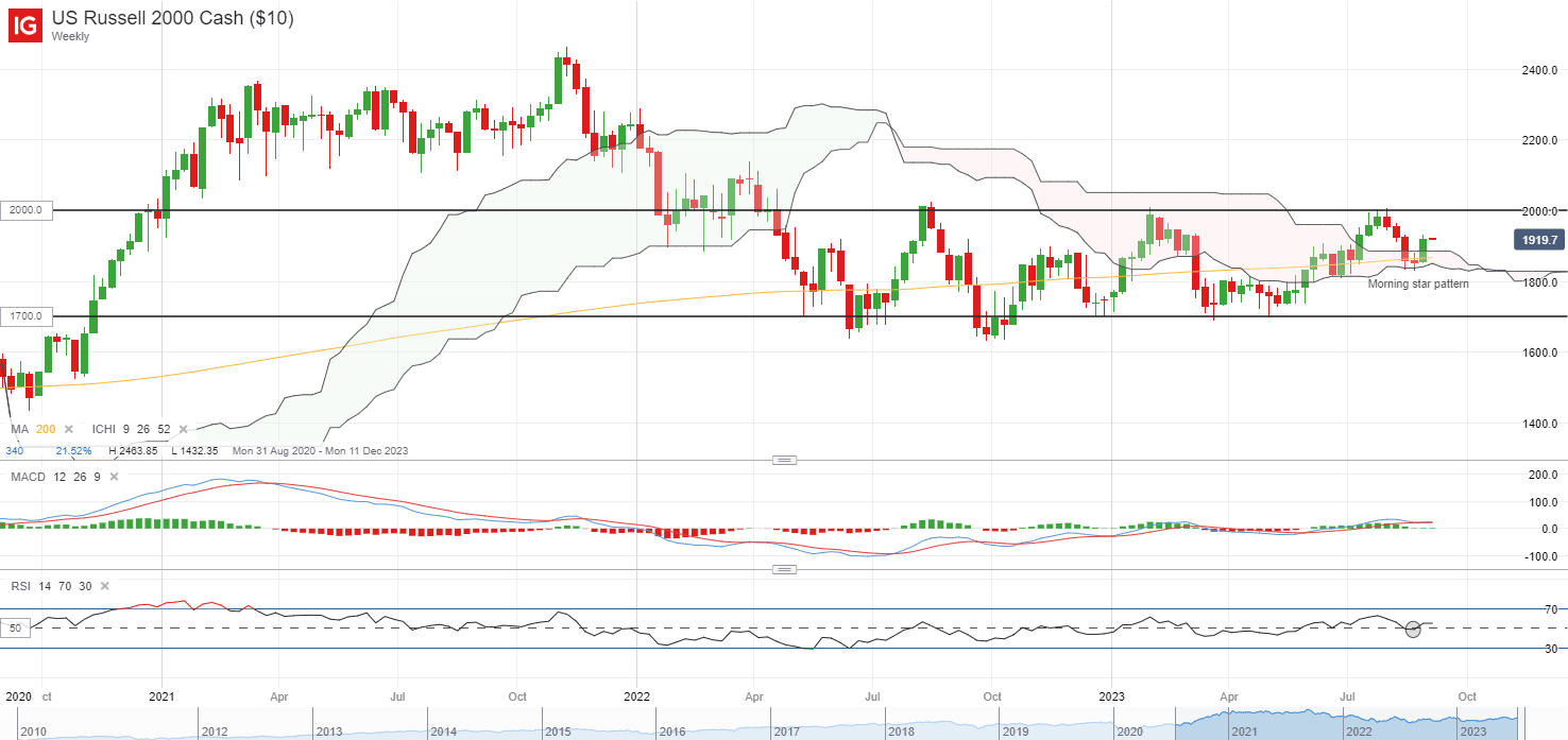 Market Recap The US jobs data release last Friday continues to reflect signs of softening in the US labour market, which seems to be in line with what the Federal Reserve (Fed) wants to see. Job additions were somewhat lukewarm despite being slightly higher than consensus (187,000 versus 170,000 forecast), while unemployment rate jumped to 3.8% from previous 3.5%. Along with some moderation in wage growth, rate expectations found validation for the Fed to keep rates on hold this month, with 62% probability being priced for the November meeting. Treasury yields were higher however, with the two-year yields paring earlier losses while the ten-year is up 7 basis-point (bp), overall lifting the US dollar. This comes as US Institute for Supply Management (ISM) manufacturing purchasing managers index (PMI) data may support rates to be keep high for longer by displaying a lesser-than-expected contraction in manufacturing prices (48.4 versus 43.9 forecast). Wall Street was little changed, somewhat catching a breather from its recent rally, with US markets offline today due to Labour Day holiday. This may bring about lighter trading volume across the globe and set the stage for a quieter start to the week. Attention will then be turned to China’s Caixin PMI data and the RBA interest rate decision tomorrow, along with retail sales figure in Singapore. Perhaps one to watch is the Russell 2000 index, which is up 3.4% for the week. On the weekly chart, a morning star formation seems to be in place, while its relative strength index (RSI) attempts to defend its key 50 level last week. This follows after a retest of the lower edge of its Ichimoku cloud pattern on the weekly chart, which has supported prices for the second occasion since May this year. Staying above its 200-day MA may keep the near-term bias intact, with immediate support at the 1,900 level. On the upside, the key psychological 2,000 level will serve as key resistance to overcome. Source: IG charts Asia Open Asian stocks look set for a positive open, with Nikkei +0.32%, ASX +0.71% and KOSPI +0.19% at the time of writing. The Nasdaq Golden Dragon China Index was up 3.2% last Friday, digesting the recent fresh moves from China authorities to support the CNY and its housing market. China’s financial regulators have cut the down-payment requirements for first and second-time home buyers and lowered rates on existing mortgages – a move to provide some support for home sales demand as a bid to restore confidence, although much still awaits on how much impact it may eventually have. On another front, Country Garden’s recent success in buying some time from its creditors for its 3.9 billion yuan onshore private bond could provide some support for Chinese equities to start the week, although past lessons from China Evergrande suggests that any extension could be just a near-term reprieve, with the lack of an eventual resolution still a headwind for risk sentiments eventually. Aside, one to watch may be the USD/JPY, which saw the formation of a bullish hammer on the daily chart last Friday to defend the key 145.80 level. This level marked a crucial level of intervention by the Bank of Japan (BoJ) in September last year, with the dip-buying in place reflecting some expectations for the US-Japan yield differentials to be well-supported by policy divergence. A move above last Tuesday’s high may potentially support a move to retest the 148.80 level next, while on the downside, the 145.00-145.80 range will remain a key level of support for buyers to hold. Source: IG charts On the watchlist: Brent crude prices setting its sight for new year-to-date high Brent crude prices continue to climb last Friday (+2.1%), shrugging off the stronger US dollar to stand just less than 1% away from a new year-to-date high. For the week, prices are up 5.5% - its best week since April this year. Declining inventories in the US, along with further output cuts expected out of Russia, continues to underpin a tightening supply outlook while on the technical front, prices continue to trend above its 200-day MA. A bullish crossover was formed on its MACD on the daily chart last week, overall supporting some build-up in positive momentum. Further upside may leave the US$98.00 level on watch for a retest next, which marked its October and November 2022 highs. Source: IG charts https://www.dailyfx.com/news/us-holiday-today-but-focus-could-be-on-china-russell-2000-usd-jpy-and-brent-crude-20230904.html