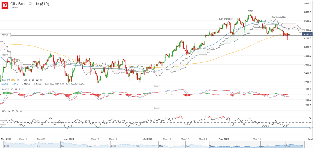 MARKET RECAP Initial gains in Wall Street reversed sharply overnight, with Nvidia’s stellar results hit with a sell-the-news market reaction, as market participants de-risk ahead of Fed Chair Jerome Powell’s Jackson Hole speech later tonight. The VIX was up 7.6% as a reflection of increased hedging activities, while market sentiments (from the CNN Fear and Greed Index) have fallen back into ‘fear’ territory for the first time since March this year. No doubt the Fed’s policy outlook will be the key driving force for markets ahead. With fresh updates on US inflation and labour market data after the previous FOMC meeting, focus will be on what factors the Fed Chair will have his attention on. Maintaining his emphasis on the Fed’s data-dependent stance and bringing up progress in US inflation may potentially be perceived as a less hawkish view, but on the other hand, highlighting the risks of a reacceleration in demand and the need for high-for-longer rates will likely be a more hawkish message. For now, expectations remain firmly priced for rates to be kept on hold in September, but the probability for a November hike has increased to the current 41%, from 32% just a month ago. Treasury yields firmed overnight, following an earlier sell-off on Wednesday, while the US dollar is back at its two-month high, as some positioning for a hawkish takeaway gets underway. Perhaps one to watch may be Brent crude prices, which saw dip buyers attempting to defend the neckline of a head-and-shoulder formation (four-hour chart), with the formation of a series of long-legged pin bars overnight. Greater conviction may have to come from a move back above its shoulders at the 85.40 level, where the upper edge of its Ichimoku cloud resistance (four-hour) may have to be overcome as well. On the other hand, price projection from any breakdown of the head-and-shoulder neckline at the 82.70 level could leave the 78.20 level on watch next. Source: IG charts ASIA OPEN Asian stocks look set for a negative open, with Nikkei -1.55%, ASX -1.05% and KOSPI -0.81% at the time of writing. The rush for market participants to further de-risk ahead of Fed Chair Jerome Powell’s comments has spilled over to the Asia session, given that the previous Fed minutes did not reflect the level of unity among policymakers for a rate pause as what many have expected. The Nasdaq Golden Dragon China Index is down 0.7% overnight, which may challenge the rebound in Chinese equities from oversold technical levels in the earlier session. The formation of lower highs and lows in the Hang Seng Index year-to-date, along with its weekly RSI failing to sustain above the 50 level for the third time this year may still call for more wait-and-see. On the economic calendar, this morning saw the release of Tokyo’s August Consumer Price Index (CPI) data, with moderating headline inflation (2.9% versus previous 3.2%) but a further uptick in the ‘core-core’ aspect (2.6% versus previous 2.5%) providing a mixed view overall. That did not trigger too much of a reaction in the USD/JPY, with the pair taking its lead from US dollar strength on mounting hawkish Fed views. Aside, the AUD/JPY seems to be trading on a near-term descending triangle, with the formation of lower highs and the triangle base around the 93.00 level. Arguably, the recent retracement to a 38.2% Fibonacci level from its March 2023 bottom to June 2023 peak may also leave some hopes on a broader bullish pennant formation. The 93.00 level may be an immediate support level to hold, failing which could pave the way to retest the 91.80 level next, where strong dip-buying off a 50% Fibonacci retracement level was sighted on 28 July 2023. On the upside, the downward trendline resistance will be a key line to overcome, with greater conviction probably having to come from a move back above the 95.34 level. Source: IG charts On the watchlist: 200-day MA for EUR/USD in the crosshair Strength in the US dollar overnight has kept the EUR/USD under pressure, with the pair pushing to a new two-month low and leaving its 200-day MA under threat of a breakdown. Its weekly RSI is also back to retest the key 50 level for the third time this year, with any failure to defend the MA-line over the coming days likely to leave sellers in greater control. For now, the 1.080 level seems like an immediate key support to hold. Any subsequent move below the 1.080 level may potentially pave the way towards the 1.063 level next, which will also mark the first time where the pair trades below its 200-day MA since November 2022. https://www.dailyfx.com/news/de-risking-ahead-of-fed-chair-s-jackson-hole-speech-brent-crude-aud-jpy-eur-usd-20230825.html