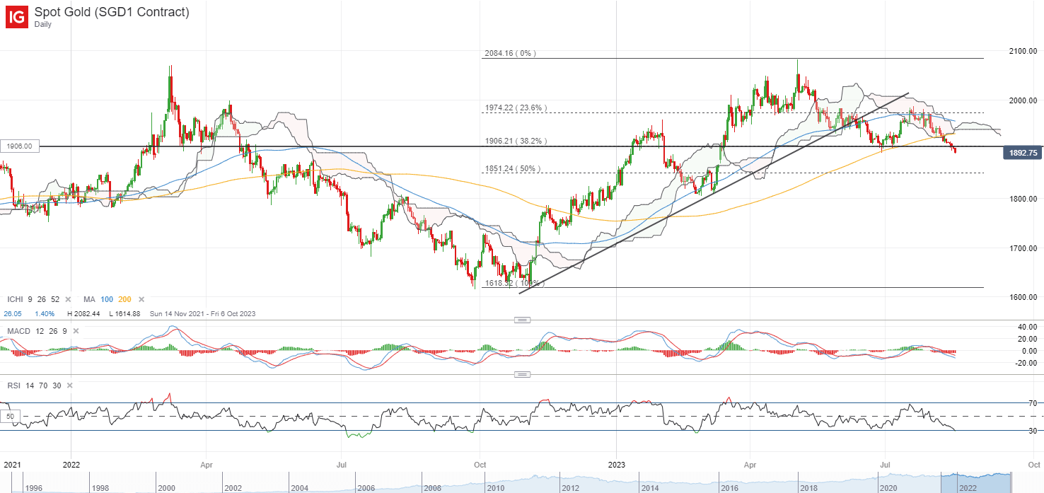 GOLD PRICE FORECAST: Gold (XAU/USD) At a Key Area Around the $1900 Mark with the First Daily Candle Close Below the 200-Day MA since December 2022. Fed Minutes Ahead. Dollar Index (DXY) Holds the High Ground as Retail Sales Kept the Dollar Supported. Ongoing Risk-Off tone Around China Could See the DXY Continue to Advance Thanks the Dollars Safe Haven Appeal. Gold prices continue to hover around the $1900 support handle following a brief push lower yesterday. Sellers were unable to maintain the momentum however, with the precious metal closing just above the $1900 mark but more importantly closing below the 200-day MA for the first time since December 2022. DOLLAR INDEX AND FEDERAL RESERVE (FOMC) MINUTES The Dollar Index which has had a huge say in Golds recent struggles finds itself at a key inflection point ahead of the Fed minutes later today. Upbeat retail sales data yesterday helped keep the Greenback supported just as it appeared to be on its way down from the confluence area around the 103.00 handle. As global markets face renewed concerns around the economic recovery in China it is the Dollar which continues to attract the safe haven bids rather than Gold which is understandable given the current rates on offer. The Dollar Index (DXY) remains at a key confluence around the 103.00 handle as it ran into the 200-day MA. I still think there is scope for Dollar downside after the Fed minutes with downside toward the 50 and 100-day MA. More uncertainty around China however, and a continued battle between risk-on and risk-off sentiment could see the Dollar remain supported due to its ongoing safe haven appeal with a break of the descending trendline coming into focus. Dollar Index (DXY) Daily Chart – August 16, 2023 Source: TradingView, Chart Prepared by Zain Vawda Looking ahead to the rest of the day and we have quite a bit of data out of the US. I do not expect too much volatility from these events ahead of the FOMC meeting and we could be in for rangebound price action throughout the day as market participants reposition ahead of the Fed Minutes release. TECHNICAL OUTLOOK AND FINAL THOUGHTS Form a technical perspective, Gold prices have closed below the 200-day A on a daily timeframe for the first time since December 2022. This is a strong indication that the longer-term trend may be shifting as gold loses its shine with attractive yields also weighing on the precious metal. Further downside definitely remains a possibility, however the RSI (14) is approaching overbought territory which s=means a short-term bounce may occur before the selloff continues. At this stage any bounce will need to a daily close above the $1925-$1930 (pink rectangle on the chart) for me to be convinced of a change in momentum. Markets do appear to be largely driven by the fundamental and macro pictures at the moment and thus my initial thoughts are that any move will likely be dependent on the risk tone today as well as how market participants perceive the FOMC minutes later in the day. Gold (XAU/USD) Daily Chart – August 16, 2023 Source: TradingView, Chart Prepared by Zain Vawda https://www.dailyfx.com/news/gold-xau-usd-flirts-with-1900-support-as-fed-minutes-loom-20230816.html