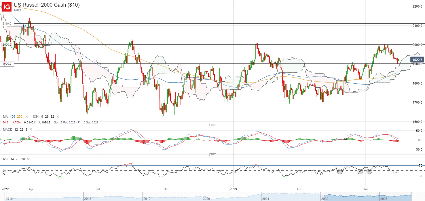 Wall Street managed to start the week higher (DJIA +0.07%; S&P 500 +0.57%; Nasdaq +1.05%), tapping on some recovery in big tech and semiconductors to override earlier jitters around China’s property and financial sector risks. There was not much to note on the economic calendar overnight, with the relief potentially attributed to the positive view on Nvidia from Morgan Stanley, along with some attempt to stabilise after recent sell-off. US Treasury yields continue its way higher, with the 10-year yields back at its year-to-date high around the 4.2% level. The two-year yields edged near its 5% level as well, largely a reflection for US rates to be kept high for longer. The US dollar index tapped on higher yields to gain 0.3%, but are now facing a crucial test of resistance at its 200-day moving average (MA), which it has not overcome since November 2022. Its weekly relative strength index (RSI) is hanging at its key 50 level as well, suggesting that its moves over the coming days may be critical in determining the trend ahead. Perhaps one to watch may also be the Russell 2000 index, which is currently back at its previous horizontal resistance-turned-support at the 1,900 level, in coincidence with the upper edge of its Ichimoku cloud on the daily chart. A long-legged candle denotes some overnight dip-buying, but buyers may potentially find greater conviction from a move in the daily RSI back above its 50 level. For now, the 1,900 level will need to see some defending, failing which may pave the way towards the 1,820 level next. Source: IG charts Asia Open Asian stocks look set for a positive open, with Nikkei +0.70% and ASX +0.38% at the time of writing. South Korean markets are off-trading for Liberation Day. Despite the relief in Wall Street, Chinese equities are more subdued, with the Nasdaq Golden Dragon China Index down 0.5% overnight. Economic releases this morning saw a pull-ahead in Japan’s 2Q GDP (annualised 6% vs 3.1% forecast), the strongest expansion since 4Q 2020. The data is likely to provide the Bank of Japan (BoJ) with more room for normalisation, although the initial short-lived bounce in the Japanese yen seems to reflect some market expectations that patience from the central bank is still the likely stance. Ahead, focus will be on the Reserve Bank of Australia (RBA) minutes. At the previous meeting, the RBA has kept its tightening bias in place for some policy flexibility, so the minutes will be scrutinised on the factors to guide the RBA’s next decision. The China’s monthly economic data dump will be in focus as well. Industrial production is expected to stay unchanged, while retail sales are projected to recover to 4.5% from previous 3.1%. The downside surprises in economic data lately may leave room for disappointment and it may still have to take a trend of recovering economic data to convince markets that the worst is over. The Straits Times Index is attempting to defend its trendline support after unwinding all of its past month’s gains, alongside its 200-day MA at around the 3,245 level. Failure to defend the trendline support with a break below its 3,230 level may potentially support a move to retest its July 2023 bottom at the 3,130 level. On any upside, the 3,260 level will be an immediate resistance to overcome. Source: IG charts On the watchlist: AUD/USD attempting to find support from year-to-date low Ahead of the RBA meeting minutes and China’s economic data today, the AUD/USD is tapping on some relief in the risk environment overnight to hold its year-to-date bottom at the 0.645 level. The formation of a bullish pin bar on the daily chart reflects some near-term dip-buying, although one may watch for a confirmation close to potentially support a move to retest the 0.659 level. Thus far, rate expectations remain firm that the RBA is nearing the end of its hiking cycle but the central bank’s data-dependent stance will still leave eyes on incoming data such as wage growth and inflation for confirmation. For now, while there is an attempt to stabilise after recent sell-off, the broader trend still seems to carry a sideway to downward bias, with the weekly RSI hanging below the 50 level. The year-to-date bottom at the 0.645 level may have to see some defending ahead for some near-term relief. Source: IG charts Friday: DJIA +0.07%; S&P 500 +0.57%; Nasdaq +1.05%, DAX +0.46%, FTSE -0.23% https://www.dailyfx.com/news/market-relief-in-wall-street-amid-china-s-jitters-russell-2000-straits-times-index-aud-usd-20230815.html
