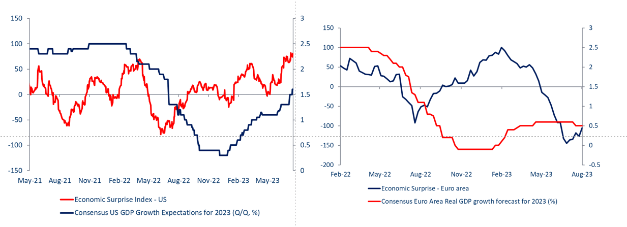 Euro Vs US Dollar, Australian Dollar, British Pound – Outlook: EUR/USD is nearing key support ahead of Euro area GDP and FOMC minutes. EUR/AUD is attempting to break above a vital ceiling; EUR/GBP is off highs. What is the outlook and the key levels to watch in key Euro crosses? The euro is testing key levels against some of its peers ahead of the release of Euro area GDP data (due later today) and the FOMC minutes (due Thursday). The Euro area economic growth likely slowed to 0.6% on-year in the April-June quarter from 1.1% in the previous quarter on tightened credit conditions as the effect of aggressive ECB rate hikes spills over. The underwhelming macro data is reflected in the Euro area Economic Surprise Index (ESI), which is just off 3-year lows. Economic Surprise Index – Euro Area and US While the unexpected improvement in German investor morale in August is positive, the economic growth outlook needs to reverse for a sustained rebound in EUR, especially against the US. Against other currencies, EUR has been largely resilient, reflecting stable ECB rate expectations until mid-2024. EUR/USD 240-Minutes Chart The US ESI is hovering around the highest level since early 2021. In addition, consensus has upgraded its US economic assessment for the current year. A data-dependent Fed is likely to keep the optimistic 2024 rate cut expectations in check. In this regard, the focus is on minutes of the June FOMC meeting due on Thursday, especially given a resilient US economy, a tight labour market, and market expectations that Fed rates may have peaked. EUR/USD Monthly Chart EUR/USD: Approaching a vital cushion On technical charts, EUR/USD is now approaching a fairly strong cushion zone, including the July low of 1.0830, the 200-day moving average, and the 89-day moving average. This follows a failed attempt to rise above the July 31 high of 1.1045 – a risk pointed out in the previous update. See “Euro Lifted Slightly by US Downgrade, but Will it Last? EUR/USD, EUR/AUD, EUR/NZD Price Action,” published August 2. EUR/USD Daily Chart Any break below could open the door toward the 1.0500-1.0600 area, including the early-2023 lows. This support area needs to hold for the broader uptrend to persist. On the upside, a break above last week’s high of 1.1065 is needed for the immediate weakness to fade. EUR/AUD Weekly Chart EUR/AUD: Attempting to break higher EUR/AUD is attempting to break above crucial resistance on a horizontal trendline from 2020, at about 1.6800. Any break above could open the way toward 1.7700 (the 61.8% retracement of the 2020-2022 slide). From a medium-term perspective, the trend is up given the higher-top-higher-bottom sequence since late 2022, as highlighted in the previous update. EUR/GBP Daily Chart EUR/GBP: Upside capped EUR/GBP continues to be weighed by a stiff converged hurdle, including the 200-day moving average, a downtrend line from early 2023, around the July high of 0.8700. Beyond any short-term sideways price action, the overall bias remains toward the downside while the resistance holds. https://www.dailyfx.com/news/euro-ahead-of-euro-area-gdp-fomc-minutes-eur-usd-eur-aud-eur-gbp-price-setups-20230816.html