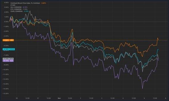 Semler Scientific's 26% gain following quarterly results was leading the advance for crypto-linked stocks. Risk assets are on the rise as Americans head to the polls to elect their next president as well as to determine which political party will control the two houses of Congress. Bitcoin (BTC) crossed back above $70,000 early in the U.S. trading day, up 2.4% over the past 24 hours. The broader CoinDesk 20 Index was higher by 1.6% over the same time frame, with Ethereum's ether (ETH) notably continuing to underperform bitcoin. At 0.03526, the ETH/BTC ratio fell to its weakest level since April 2021. Read More: Here's Why Today's U.S. Election Matters for Crypto Crypto-linked stocks were on the move as well. Semler Scientific — which reported its third quarter results Monday night — was higher by 26% as that company disclosed additional bitcoin purchases and reiterated its commitment to a bitcoin stockpiling strategy similar to that of Michael Saylor's MicroStrategy (MSTR). For its part, MSTR was higher by 7.5% in early trading. Recently roughed-up bitcoin miners like Marathon Digital (MARA), Riot Platforms (RIOT) and Hut 8 (HUT) were sporting gains in the 3%-5% range. Crypto exchange Coinbase (COIN) was higher by 3%, though remains lower by about 10% over the past few sessions following a disappointing third quarter earnings report. In traditional markets, the Nasdaq was higher by more than 1% and the S&P 500 advanced 0.8%. Gold and oil were moderately in the green and the 10-year U.S. treasury yield was up seven basis points to 4.36%. Polls continue to show a tight race for not just the U.S. presidency but also the fight for which party might control the House of Representatives and the Senate. Betting market Polymarket though — after a very volatile past few days — is again showing sizably higher odds for a Donald Trump victory, currently 62% versus a Kamala Harris win at 38%. The odds for a Republican sweep — the presidency, the House and the Senate — are at 39%, while the odds of a Democrat sweep are at 16%. https://www.coindesk.com/markets/2024/11/05/bitcoin-breaks-above-70k-as-crypto-and-us-stocks-move-higher-early-on-election-day/