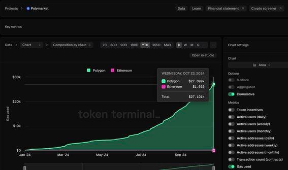 One of the major breakout successes this year for the team behind layer-2 blockchain Polygon is Polymarket. But according to data, Polymarket has only brought in about $27,000 of transaction fees for Polygon PoS in 2024. Polymarket – the decentralized predictions market – has been a massive success for the Polygon blockchain, in terms of being an app that is organically breaking out, getting mainstream usage and attention. But according to data, Polymarket has only brought in $27,000 in fees on Polygon’s PoS blockchain in 2024. Polygon Labs CEO Marc Boiron agreed that $27,000 is a low figure, but argues that this shows how cheap it is to use the blockchain – a selling point. The fees for transacting on Polygon is about $0.007, easily below the sub-cent threshold that several teams have targeted. Boiron arguest that apps like Polymarket aren’t expected to bring in large revenues in transaction fees, as one might expect from more transaction-intensive applications like decentralized crypto exchanges. One of the major breakout successes this year for the team behind layer-2 blockchain Polygon is Polymarket – the decentralized predictions market where users have flocked this year to place bets on everything from presidential politics to the conclusion of an HBO documentary. What's less clear to crypto analysts examining Polygon's performance metrics is whether the coup will bring relief to holders of the project's ailing tokens, down 65% this year. Polymarket has soared in popularity among mainstream users, allowing them to make bets on the upcoming U.S. presidential election. Polymarket bettors have added nearly $2.4 billion on the question of whether Donald Trump or Kamala Harris will win the election in November. Bettors also recently made a market on whom a recently debuted HBO documentary about Bitcoin would attempt to identify as inventor Satoshi Nakamoto. Polymarket is built on the Polygon PoS blockchain, and the application is one of the first major organic successes for the team – known for a past marketing strategy of paying partners like Starbucks to use the network. So given the application's boom in usage, why has it only produced a small amount in dollar figures for the Polygon team, and barely any bump in the price of the native POL token? According to data from Token Terminal, as of Oct. 23, Polymarket has only brought in about $27,000 of transaction fees for Polygon PoS in 2024. The answer, in part, is that the fees are market-based. And lately, transacting on Polygon PoS is extremely cheap. The average transaction fee on the Polygon PoS chain on that same day was $0.007. Anytime a Polymarket user makes a bet, they’re creating a transaction on Polygon PoS. As part of those transactions, they pay fees to Polygon PoS, which is split up into a base fee and a priority fee. The base fee does not go towards validators; instead it is burned – sent to a null address that theoretically should benefit tokenholders by helping to reduce the supply. “That base fee is adjustable and it's based off of network congestion,” Polygon Labs CEO Marc Boiron told CoinDesk in an interview. “So as the network gets more congested, that base fee increases.” The priority fee is paid out to a validator. “You're paying the validator to say, Please include me in a block," Boiron added. "The higher a fee you pay, the earlier the validator will include you in a block if there's more congestion.” If there's ample blockspace, there's less of a need to pay up. Another issue is that, in the grand scheme of things, while Polymarket's bettors are quite active, the volume of transactions doesn't come close to the level of high-intensity applications like decentralized crypto exchanges (DEXs). So far this month, 5.2% of transactions on the Polygon PoS chain came from Polymarket, according to Polygon’s research team. Chainlink makes up 10.38% of transactions on PoS, while transfers of the stablecoin USDT make up 4.89%. Just to take the example of a recent day's activity. On Oct. 23, Polymarket accounted for about 8% of the "gas" used on Polygon PoS, based on data from the blockchain explorer PolygonScan. That made it the largest individual contributor. In blockchain terminology, gas is a measure of the computational intensity required for any given batch of transactions. “I look at how it's built," Boiron said. "I would never expect a lot of fees from Polymarket, because it doesn't have a massive amount of composability, like Uniswap. It has some, but not a lot. It's really just users coming there. They’re executing a transaction, and then stopping. So it's inherently never going to drive that much until, like, the number of users goes way up.” Attention is the reward Polygon for long has looked for its mainstream breakthrough moment, pouring millions into the partnerships with Starbucks and Meta to try and bring Web3 to the masses. Those deals never really took off. The Polygon team is encouraged by the enormous attention that Polymarket has been getting, hoping the attention will feed into bigger numbers in the wider Polygon ecosystem. Boiron told CoinDesk: “The question is, like, why is Polymarket so interesting if they are only bringing $20K? The obvious reason is just, let's call it attention.” The success shows that “you can have an amazingly successful app on Polygon PoS that, like you can, you hardly even know that you're using a blockchain,” he said. To look on the bright side, “Paying only $20K in transaction fees, frankly, just reflects how cheap it is to use Polygon PoS,” Boiron said. The organic explosion of Polymarket has contributed to Polygon’s success because of the attention it brings to the ecosystem, he said. “Different applications have different roles," Boiron said. "For me, Polymarket’s role includes: We're giving them super cheap transactions that make it really easy. And attention is the thing – that is the value add – that Polymark