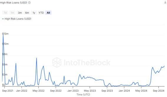 The total amount of crypto-collateralized loans within 5% of their liquidation price is at its highest in over two years. The total amount of crypto-collateralized loans within 5% of their liquidation price is at its highest in over two years on Avalanche's leading decentralized lending platform Benqi, according to IntoTheBlock. The surge in the so-called high-risk loans indicates potential liquidation cascades and market volatility ahead. The decentralized lending market on Avalanche is booming, with "high-risk" loans on decentralized platform Benqi surging to over two-year highs, sparking concerns of liquidation cascades and volatility. The total amount of high-risk loans, defined as those within 5% of their liquidation price, rose to $55 million Wednesday, reaching the highest since June 2022, according to data tracked by analytics firm IntoTheBlock. Crypto traders often draw loans from decentralized lending platforms by locking in collateral in the form of digital assets. The risk here is that if the value of the collateral falls too much, the protocol liquidates the debt by selling off the collateral. A loan within 5% of the liquidation price means if the collateral's price falls by 5%, it will no longer cover the loan, triggering liquidation. Thus, the surge in these risky loans is noteworthy as it can lead to a liquidation cascade. In this self-reinforced process, a series of liquidations happen quickly, lowering crypto prices. That, in turn, causes further liquidations and increased market turbulence. "Large liquidations can impact the collateral value, putting more loans at risk of liquidation, creating a downward price spiral," IntoTheBlock said in a market update. "Rapid market drops may result in insufficient collateral to cover loans, resulting in bad depth and losses to lenders." IntoTheBlock added that bad debt can negatively impact market liquidity, making it difficult to trade large orders at stable prices. "Bad debt can keep lenders from adding new liquidity to prevent potential losses," the firm noted. Oct. 19 3:05 AM: Updates title, bullet and lede to say high-risk loans have surged on Avalanche's Benqi platform. Data provider IntoTheBlock issued a clarification in a message on Telegram. https://www.coindesk.com/markets/2024/10/18/high-risk-crypto-loans-surge-to-a-two-year-high-of-55m/