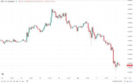 Just as optimism was about to surge, clouds rolled in, pushing prices lower. XRP fell 10% as renewed regulatory uncertainty overshadowed ETF optimism. XRP's call-put skew shows fears of an extended price drop. XRP's (XRP) options market shows a greater risk of an extended price decline than renewed gains as renewed regulatory uncertainty overshadows Bitwise's ETF filing and weighs over the cryptocurrency's price. On Monday, asset manager Bitwise submitted an S-1 form to the U.S. Securities and Exchange Commission (SEC), filing for an exchange-traded fund (ETF) that would invest in XRP. Bitcoin and ether spot ETFs, which debuted in the U.S. early this year, have pulled in billions of dollars in investor money. However, to the dismay of XRP bulls, Bitwise's action was quickly followed by the SEC filing a notice of appeal to the Second Circuit Court of Appeals, pushing back against Judge Analisa Torres's two-month-old ruling that fintech company Ripple Labs did not violate programmatic sales to retail exchanges did not violate securities rules. Four years ago, the SEC charged Ripple with selling unregistered securities after the platform sold $1.3 billion worth of XRP. While Ripple is a fintech company dedicated to building a global payments network, XRP is an independent digital asset for online payments and currency swaps. Being categorized as security is widely seen as a bearish development in the crypto market, as securities are more tightly regulated than commodities and demand greater reporting and transparency by companies. As such, XRP has declined by 11% to 53.7 cents in the past 24 hours, taking the week-to-date loss to over 16%, according to data sources CoinDesk and Coingecko. It's the third worst-performing cryptocurrency among the top 100 coins by market value. Market leaders bitcoin and ether are down 0.5% and 3.7%, respectively. Bearish options skew Options traders on Deribit seem relatively more bearish on XRP than bitcoin and ether, according to the seven-day call-put skew, which measures the difference between call and put volatility (demand). At press time, XRP's seven-day skew was -3.2%, a sign of bias for puts offering protection against price slides. BTC and ETH's seven-day skews were 0% or neutral and 2.8%, according to data source Amberdata. Meanwhile, funding rates in the XRP perpetual futures market have turned positive, reversing the brief overnight negative flip, which represented a bearish bias. https://www.coindesk.com/markets/2024/10/03/xrps-bearish-skew-persists-after-10-price-slide-amid-sec-appeal-and-etf-filing/