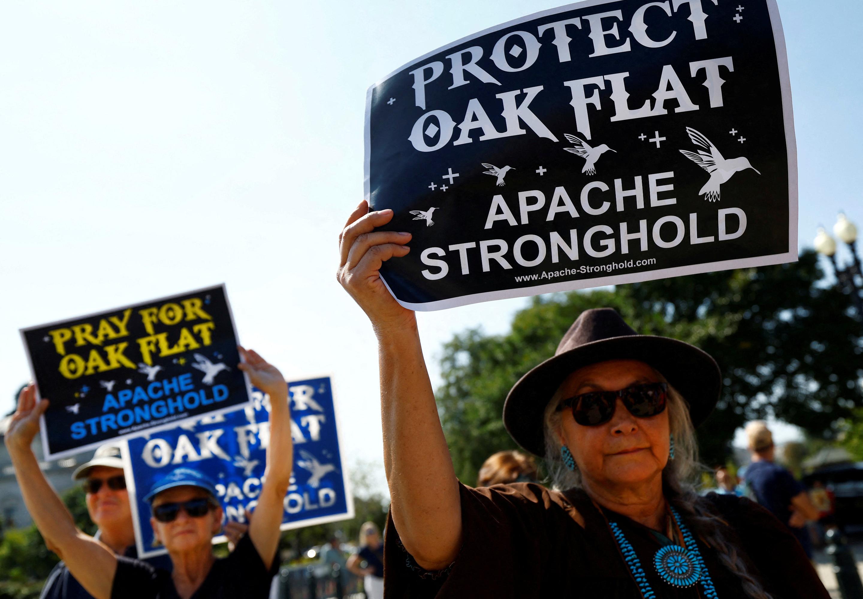Sept 11 (Reuters) - A Native American group on Wednesday asked the U.S. Supreme Court to block Rio Tinto (RIO.AX) , opens new tab and BHP (BHP.AX) , opens new tab from gaining access to Arizona land needed to build one of the world's largest copper mines, a last-ditch legal move in a long-running case pitting religious rights against the energy transition. Apache Stronghold, a nonprofit group comprised of Arizona's San Carlos Apache tribe and conservationists, asked the court to overturn a March ruling from a sharply divided San Francisco-based 9th U.S. Circuit Court of Appeals allowing the federal government to swap acreage with the mining companies for their Resolution Copper project. The appeal to the nine justices was delivered in person by a courier after the Apache held a ceremony of prayer and dancing on the court's steps in Washington, the culmination of a months-long caravan from their Arizona reservation to the capital. At least four justices would need to agree to hear the appeal, in which Apache Stronghold and their attorneys at the Becket Fund for Religious Liberty contend the government would be violating the First Amendment's guarantee of freedom of religion if the mine is developed. If the court agrees to hear the case, it could hold oral arguments in its term which begins next month and potentially issue a decision by next June. The dispute centers on the federally owned Oak Flat Campground, known as Chi’chil Biłdagoteel in the Apache language and where many Apache worship their deities. The site sits atop a reserve of more than 40 billion pounds (18.1 million metric tons) of copper, a crucial component of electric vehicles and nearly every electronic device. If a mine is built, it would create a crater 2 miles (3 km) wide and 1,000 feet (304 m) deep that would destroy that worship site. In 2014, Congress and then-President Barack Obama approved a complex deal to give Rio Tinto the land. President Joe Biden froze the land swap after assuming office in 2021. The U.S. Department of Justice, controlled by Biden, has argued in court that the government has the right to give away its land to whomever it chooses, regardless of the religious implications. "That legal argument is astonishingly broad and harmful to Native Americans and people of all faiths," said Luke Goodrich, a Becket attorney who is leading the appeal. Rio Tinto said the case "does not present any question worthy of Supreme Court review" given the 9th Circuit's ruling, which it supported. "This case is about the government's right to pursue national interests with its own land, an unremarkable and longstanding proposition that the Supreme Court and other courts have consistently reaffirmed," said a Rio Tinto spokesperson. BHP, which owns 45% of the project to Rio Tinto's 55%, declined to comment. Both companies have spent more than $2 billion on the project without producing any copper. The date of the appeal was due to a fluke of the court's calendar and not meant to coincide with the anniversary of the Sept. 11 attacks, attorneys said. Still, the date does coincide with the four-year anniversary of when Rio Tinto fired its former CEO for inadequate consultation with Indigenous groups in Australia. Sign up here. https://www.reuters.com/legal/indigenous-group-asks-us-supreme-court-block-rio-tintos-arizona-copper-project-2024-09-11/