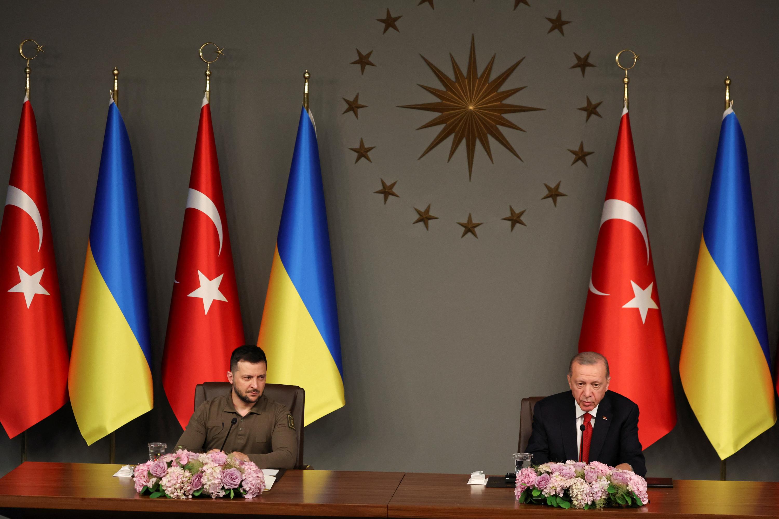 Two leaders discuss Ukraine war, grain deal, defence ties Erdogan offers to host Ukraine-Russia peace talks No Russia at first peace summit in Switzerland, Zelenskiy says Turkey has sought to maintain good ties with Ukraine and Russia ISTANBUL, March 8 (Reuters) - Turkey is ready to host a summit between Ukraine and Russia to end the war, President Tayyip Erdogan said on Friday after talks with his Ukrainian counterpart Volodymyr Zelenskiy in Istanbul. In a meeting lasting about an hour, Erdogan and Zelenskiy discussed developments in the Ukraine-Russia war, shipping security in the Black Sea including the defunct grain deal, and defence industry cooperation, according to the two sides. NATO member Turkey supports Ukraine's territorial integrity, but also maintains cordial relations with Russia, and regularly speaks with both sides in the conflict, notably as a sponsor of the Black Sea deal that lifted a de facto Russian blockade of Ukrainian grain exports. "We discussed developments about the war in detail today, I stated our observations with all my sincerity," Erdogan said at a press conference alongside Zelenskiy, whose trip comes before an expected visit by Russian President Vladimir Putin following elections in Russia on March 15-17. "We are giving our utmost contribution for the war to end on the basis of negotiations. We are ready to host a peace summit that Russia will attend too," he said, adding he had reiterated Ankara's support for Ukraine's sovereignty. Turkey had hosted peace talks between Russia and Ukraine in 2022, but has since complained that no diplomatic step has been taken to advance these discussions. It has repeatedly offered to host further talks, saying a summit of leaders was needed. Zelenskiy said Russia would not be invited to the first peace summit due to be held in Switzerland in the coming months, but that a Russian representative could be invited to the next meeting after a roadmap for peace had been agreed upon with Ukrainian allies. "We do not see any representatives of Russia at this summit. We don't see how you can invite people who block, destroy, and kill everything. We want to get a result - a just peace," he said. Last week, Turkish Foreign Minister Hakan Fidan said after meeting Russian counterpart Sergei Lavrov that it was time for Ukraine and Russia to start ceasefire talks, but added that this must not mean the recognition of Russia's occupation. DEFENCE INDUSTRY COOPERATION Turkey has provided Ukraine with armed drones and also inked an agreement for their joint production at a factory near Kyiv, but progress has been hindered by the war. It has provided Kyiv with other forms of military support, but opposes the Western sanctions on Russia. After arriving on Friday, Zelenskiy visited a shipyard near Istanbul to inspect construction work on two corvettes for the Ukrainian navy. He later said he had discussed the joint production of some arms and ammunition with Erdogan. "Today, we have reached agreements on joint defence projects both at the government level and between companies," he said on the social media platform X after meeting Erdogan. "I met with the Turkish defence industry representatives. We are prepared to move quickly to put everything we discussed into action," he added, without elaborating. Talks also touched on the Black Sea grain deal, which was brokered by Turkey and United Nations and allowed Ukraine to safely export grain from its ports. Ankara has pushed to revive it, but Russia, which said its requests for better terms for its own food and fuel exports were ignored, has said it is not interested. As part of its balancing act, Turkey maintains its defence industry ties with Ukraine while deepening energy cooperation with Russia. It also inked an accord to take part in the post-war reconstruction of Ukraine. Reuters exclusively reported last month that a U.S. threat to hit financial firms doing business with Russia with sanctions had chilled Turkish-Russian trade, disrupting or slowing some payments for both imported oil and Turkish exports. https://www.reuters.com/world/middle-east/turkey-stress-ukraine-support-during-zelenskiy-visit-turkish-source-says-2024-03-08/