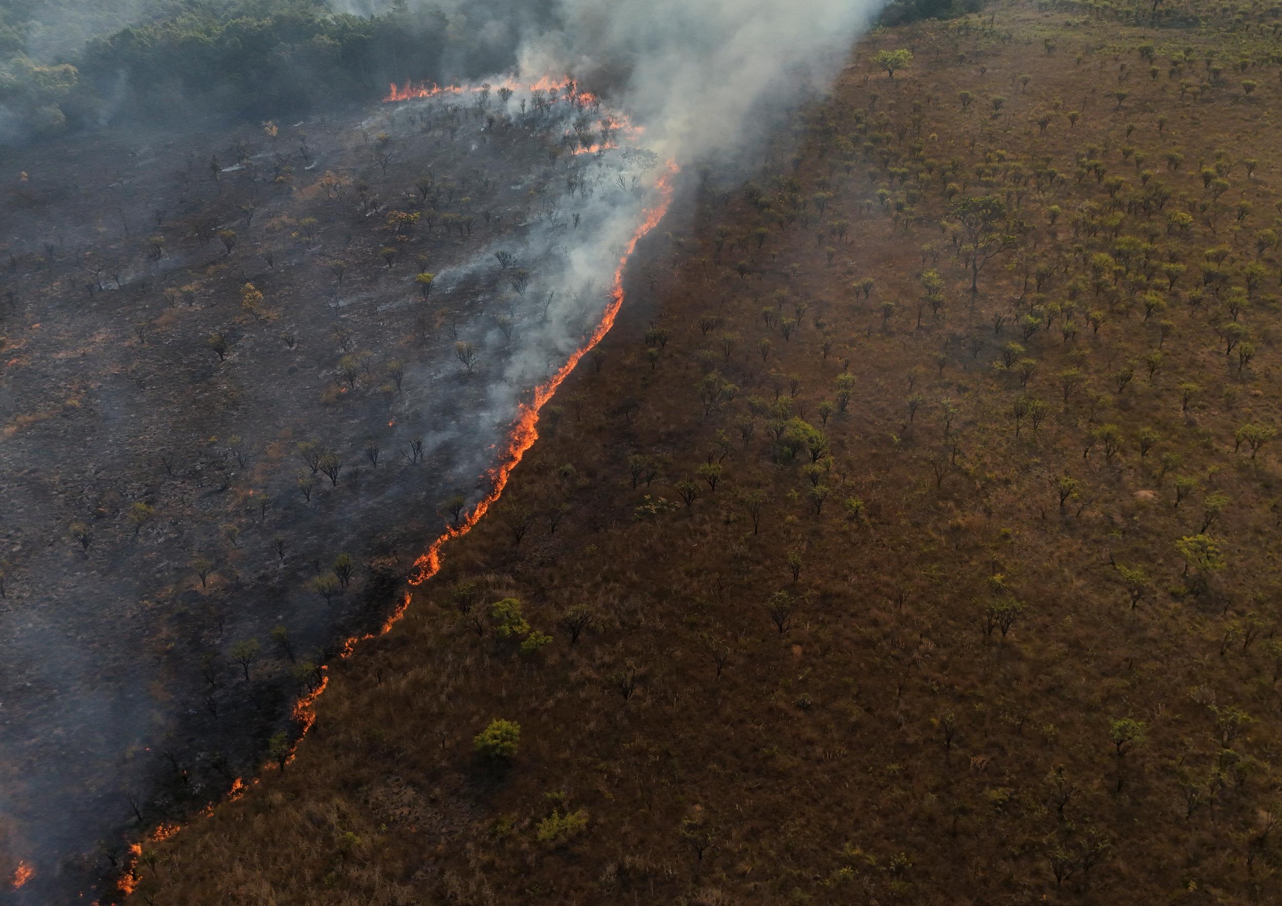 BRASILIA, Sept 4 (Reuters) - Firefighters succeeded on Wednesday in reducing the extent of a massive wildfire that blazed for two days and destroyed 20% of a forest in the Brazilian capital, cloaking the city in clouds of gray-white smoke, according to officials, who suspect that it may have been started by arsonists. The National Forest of Brasilia is a conservation area that extends over 5,600 hectares of woodland that protects the springs that are the source of 70% of the city's freshwater. The fire broke out at the peak of the dry season when vegetation is parched and temperatures high allowing flames to spread fast. "We have put out three of the four blazes and we hope to have the fire under control by the end of the day," said Fabio dos Santos Miranda, who manages the forest. "We are sure this was an environmental crime, but we haven't confirmed if it was intentional or not," he said in an interview, adding that three suspected arsonists were seen in the area where the fire started. Firefighters struggled to contain the forest fire and stop it spreading to adjacent orchards where farmers grow tomatoes and flowers. "We are working to protect the orchards, but the wind is blowing the fire towards them and the sparks fly a long way." said fireman Major Godoy. Emilia Vasconcellos, who raises cattle and chickens on a farm at risk of being caught in the blaze, said she thought people had set off the fire to clear land for themselves, but she had no evidence. The forest was cut in size by almost half in 2022 to give way to urban development by the government of far-right former President Jair Bolsonaro, who reduced environmental controls and allowed deforestation to surge in the Amazon rainforest. A record drought in the Amazon increased fires in the rainforest for the month of August to the highest level since 2010, government data showed on Sunday. Last year's rains came late and were weaker than usual because a weather pattern, known as El Nino, was supercharged by climate change, leaving the rainforest especially vulnerable to this year's fires. Sign up here. https://www.reuters.com/world/americas/wildfire-destroys-20-brasilia-forest-arson-suspected-2024-09-04/