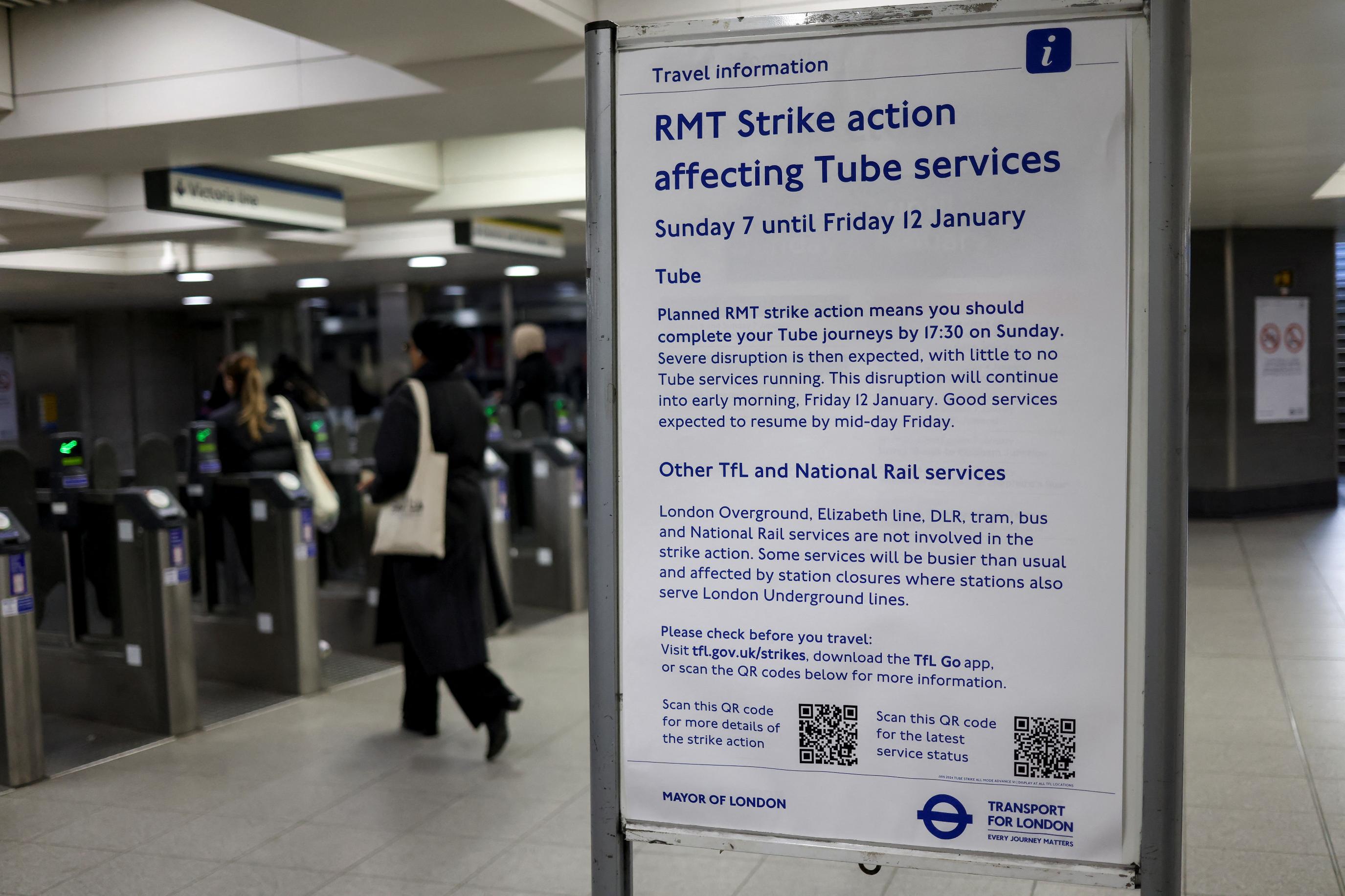 LONDON, Jan 7 (Reuters) - Strikes planned by rail union RMT members working for London Underground from Monday to Thursday have been suspended after the union said it had made progress in talks with operator Transport for London (TfL). "Following further positive discussions today, the negotiations on a pay deal for our London Underground members can now take place on an improved basis and mandate with significant further funding for a settlement being made available," RMT general secretary Mick Lynch said in a statement on Sunday. "This significantly improved funding position means the scheduled strike action will be suspended with immediate effect and we look forward to getting into urgent negotiations with TfL in order to develop a suitable agreement and resolution to the dispute." TfL said the mayor of Britain's capital had been able to provide additional funds to enable discussions with the unions to continue, but warned passengers there would still be disruption on Monday as the strike was lifted at a late stage. "We will now meet with representatives of all the unions to agree on the best way for this funding to be used to resolve the current dispute," a spokesperson said in a statement. https://www.reuters.com/business/autos-transportation/london-underground-strikes-mon-thurs-suspended-union-says-2024-01-07/