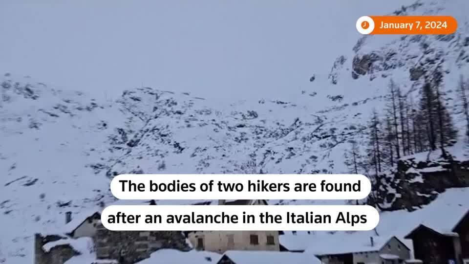 ROME, Jan 7 (Reuters) - Mountain rescue teams found the bodies of two Italian hikers after an avalanche on Sunday in the Alps close to the border between Italy and Switzerland. One body was found buried in snow while the other was recovered from a lake after the avalanche at a height of around 2,200 metres (7,200 feet)in the Val Formazza area in Italy's Piedmont region, Alpine rescue group CNSAS said in a statement. A specialist rescue team was sent to the scene by helicopter despite strong winds in the area after the alarm was raised around midday (1100 GMT). A dog trained in rescue operations also helped to find the bodies. The victims, who had been wearing snowshoes to help navigate the mountain, were a 30-year-old woman and a man aged 53, Italian media reported. They were from the region of Lombardy in northern Italy. https://www.reuters.com/business/environment/two-bodies-found-after-avalanche-italian-alps-2024-01-07/