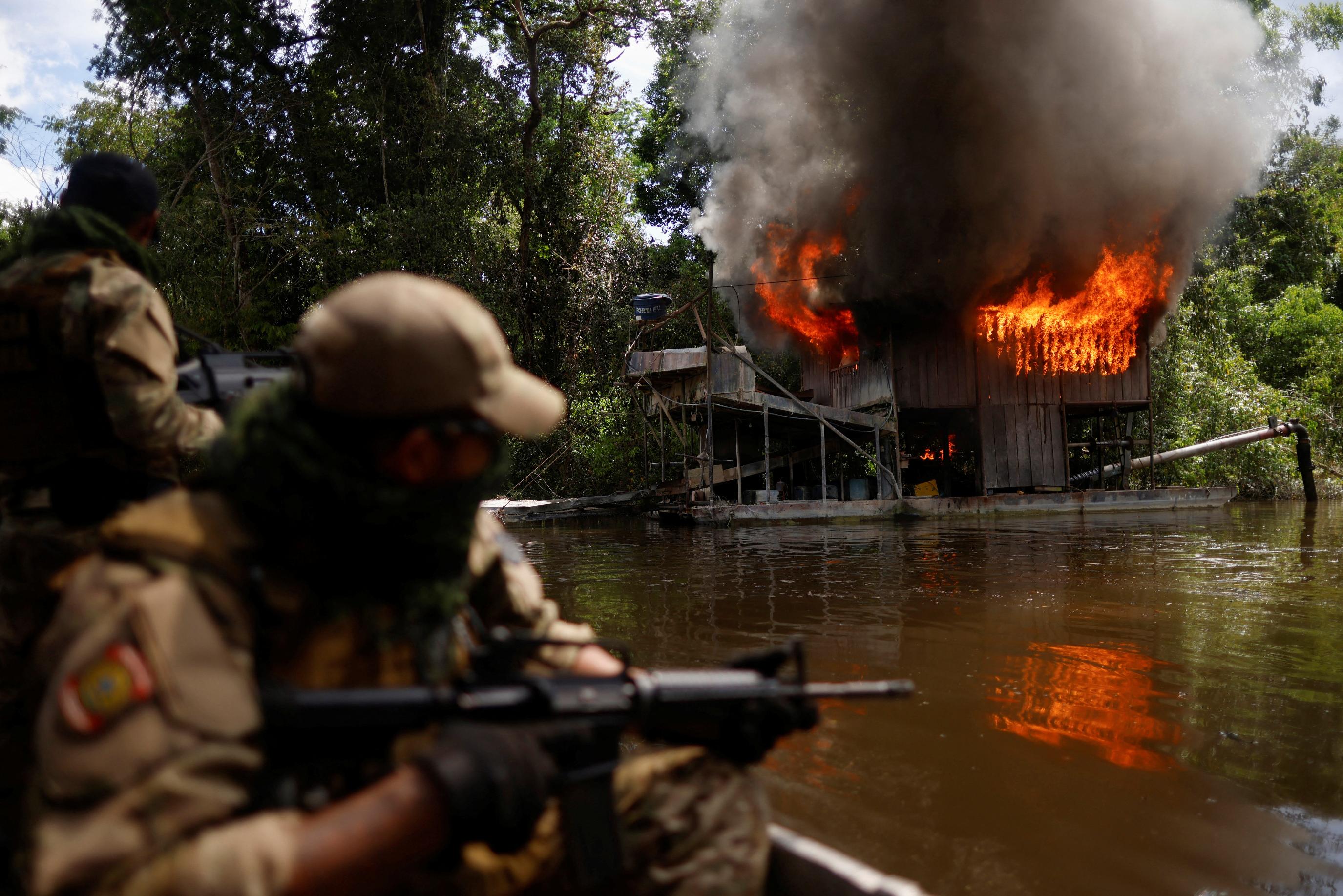 SUCUNDURI, Brazil, Dec 28 (Reuters) - Deep in the Amazon rainforest, Brazil is fighting destructive wildcat gold mining as it spreads from Indigenous lands into government-protected conservation areas. Federal Police have joined the government's biodiversity conservation agency ICMBio on a series of recent operations to catch illegal gold miners and destroy their camps and equipment. Leftist President Luiz Inacio Lula da Silva's government has already been cracking down on mining on Indigenous reservations. But that has pushed some miners to other forests where there has been little enforcement. This month, armed officers of ICMBio, a government agency named after murdered environmental activist Chico Mendes, swooped down in helicopters on wildcat camps in the upper reaches of the Tapajos, a tributary of the Amazon River. They set fire to barges used to pump and filter ore, destroyed excavators and chainsaws, and seized weapons, radios and scales used by miners to weigh their gold. Lula has vowed to stamp out illegal mining and end deforestation by 2030. That is a sharp reversal of policy from his predecessor Jair Bolsonaro, who was criticized globally for relaxing environmental controls, giving illegal loggers and miners free range in the Amazon. He argued that Brazil had the right to develop its natural resources. On one recent mission, a Reuters photographer followed an ICMBio team into the Urupadi National Forest where agents detained a handful of wildcat miners and destroyed their tents, excavators, dredging equipment and fuel supplies. The miners had cut down swathes of jungle and dug dozens of ponds to dredge for gold that they separated from sand and ore with mercury, a contaminant that poisons fish in the rivers. Through the open door of their incoming helicopter, the ICMBio agents fired automatic weapons at motor boats carrying fleeing miners. They fired again to blow up barrels of diesel fuel and set fire to excavators so they could not be used again. "We destroy their camps and they keep coming back," said mission commander Sidney Serafim. During a three-week operation, the agents found 20 mining sites and 11 clandestine airstrips in the forest, along with kilos of mercury and thousands of liters of diesel. Detained miner Fabio Santos said he had worked prospecting for gold in Munduruku territory further along the Tapajos river, but had moved out due to law enforcement missions and conflict with the Indigenous people. "We thought it would be quieter here. Bolsonaro did not destroy our equipment," he said. "Things are going downhill with the new government," said another miner, Ramon Marques. "God left the gold here for us to enjoy it," he added. The men were set free into the jungle on foot. Only the manager of one of the wildcat mining sites, Manuel de Jesus Silva, was taken into police custody. He ran a store in a wooden shack where he sold canned food and liquor to the miners for grams of gold, and had a snooker table outside for them to play. "I used to make 200 grams a month, but in the last two months I got just 100 grams," Silva complained. https://www.reuters.com/world/americas/brazil-cracks-down-wildcat-miners-amazon-shift-their-operations-2023-12-28/